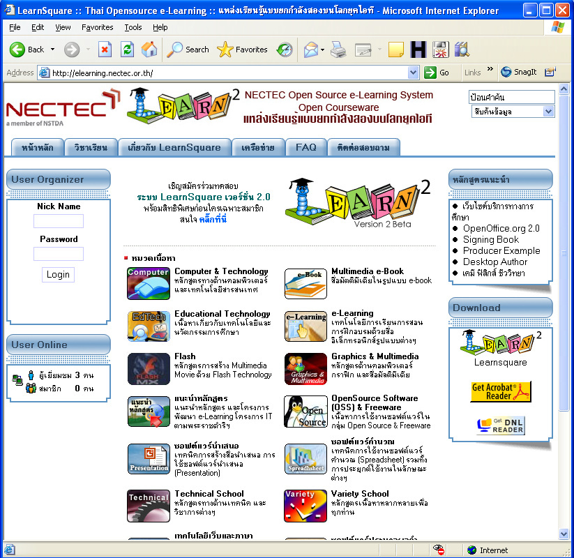 ปี พ.ศ. 2548 ได้มีการพัฒนาระบบ e-Learning โดยทีมพัฒนาเว็บไซต์ NECTEC Courseware ในขณะนั้นอยู่ภายใต้งานพัฒนาเนื้อหาสาระดิจิทัล (Digital Content Development Section: DCS) หรือหน่วยปฏิบัติการวิจัยและพัฒนาวิศวกรรมซอฟต์แวร์ (SETEC) ในปัจจุบันจนเป็นเว็บไซต์ NECTEC e-Learning