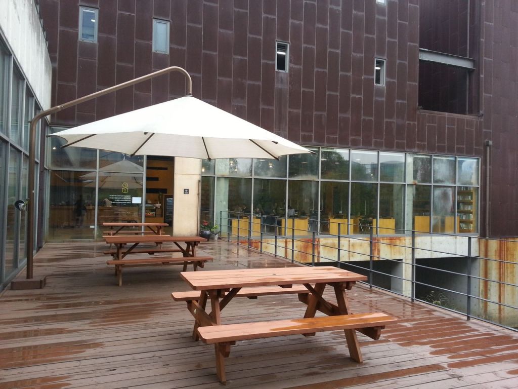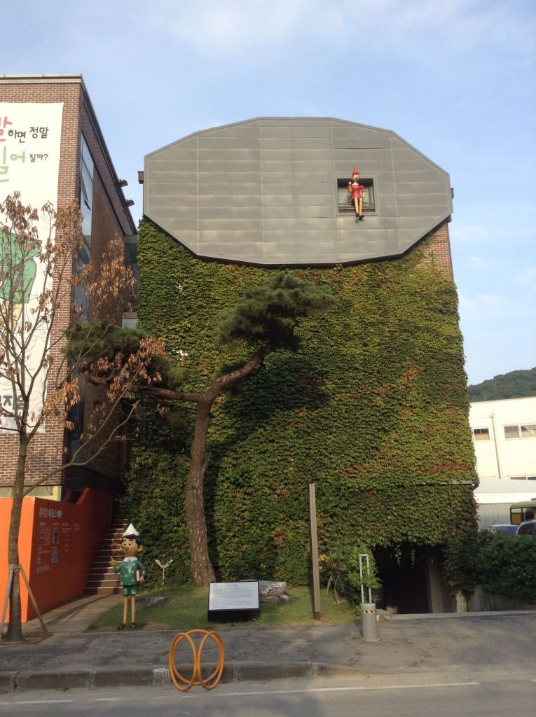 พื้นที่ด้านนอก มีทั้งพิพิธภัณฑ์ ร้านกาแฟ ร้านอาหาร สำนักพิมพ์ สำนักงานต่างๆ แม้กระทั่งการจัดแสดงบ้านแบบดั่งเดิมของเกาหลีใต้ เพื่อแสดงให้เห็นถึงวัฒนธรรมความเป็นอยู่ของคนเกาหลี