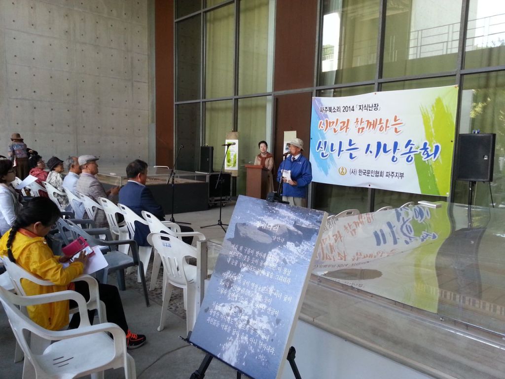 วันที่ 3/10 ซึ่งเป็นวันแรกของงานเทศกาลหนังสือ Paju Booksori Festival 2014 คณะได้เข้าร่วมพิธีเปิดและฟังสัมมนารวมทั้งร่วมกิจกรรมต่างๆ ซึ่งผู้จัดก็ดำเนินการได้น่าสนใจมาก โดยเชิญวิทยากรจากหลายประเทศมานำเสนอทางวิชาการ พร้อมการจัดแสดง ทั้งนี้ผู้จัดได้เตรียมล่ามภาษาต่างๆ ไว้พร้อมเช่นกัน