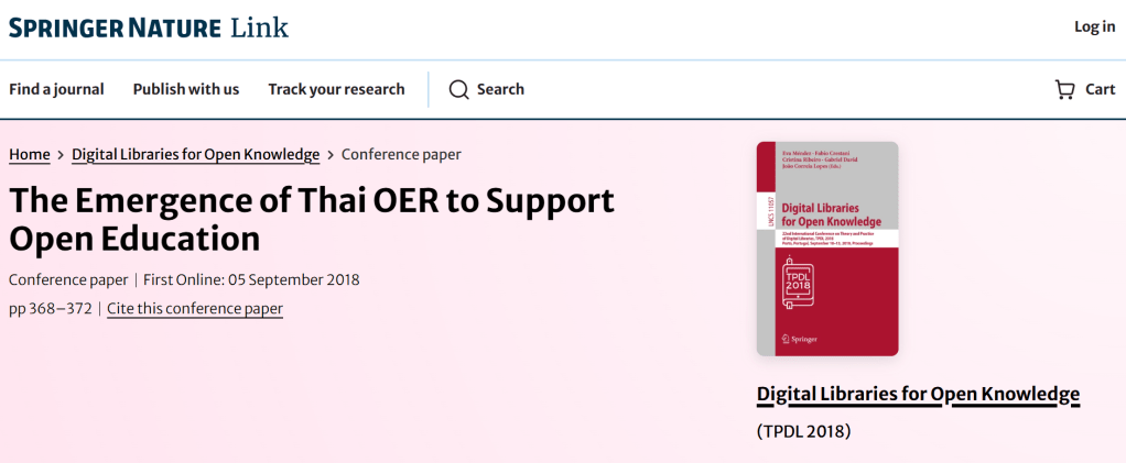 5 August 20184 November 2025 boonlertaroonpiboon The Emergence of Thai OER to Support Open Education Share this:Share Email a link to a friend (Opens in new window) Email Print (Opens in new window) Print Share on Facebook (Opens in new window) Facebook Like Loading... ที่เกี่ยวข้อง