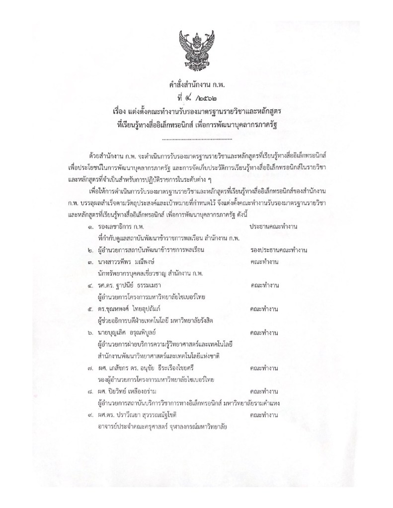 13 June 201918 August 2021 boonlertaroonpiboon คณะทำงาน สำนักงาน ก.พ. คณะทำงานรับรองมาตรฐานรายวิชาและหลักสูตรที่เรียนรู้ทางสื่ออิเล็กทรอนิกส์ เพื่อการพัฒนาบุคลากรภาครัฐ สำนักงาน ก.พ. Share this:Share Email a link to a friend (Opens in new window) Email Print (Opens in new window) Print Share on Facebook (Opens in new window) Facebook Like Loading... ที่เกี่ยวข้อง