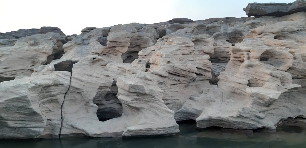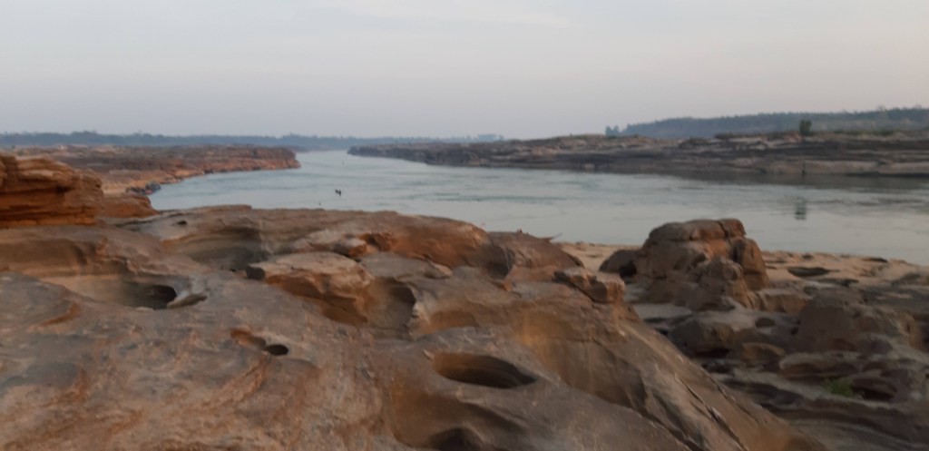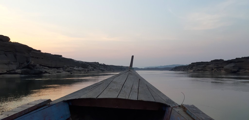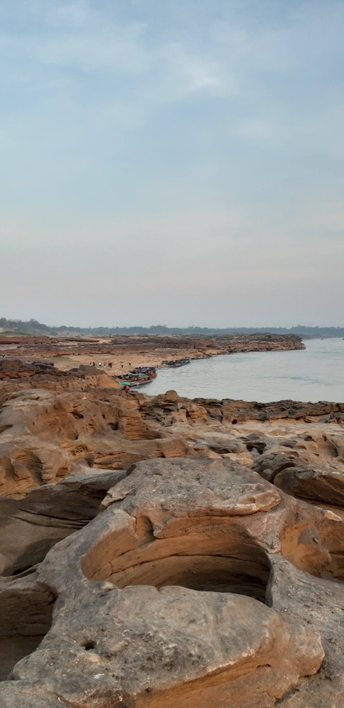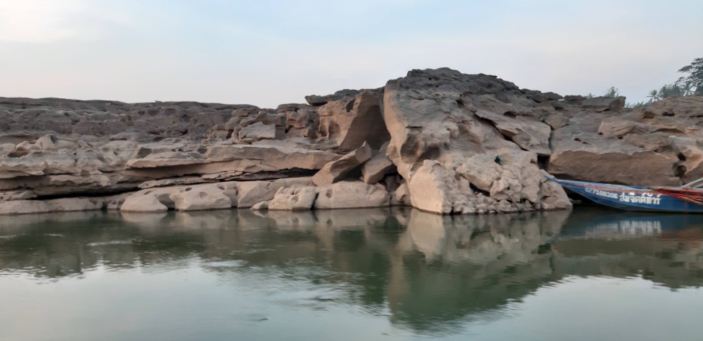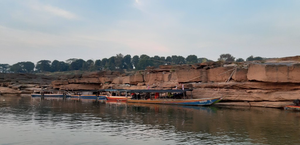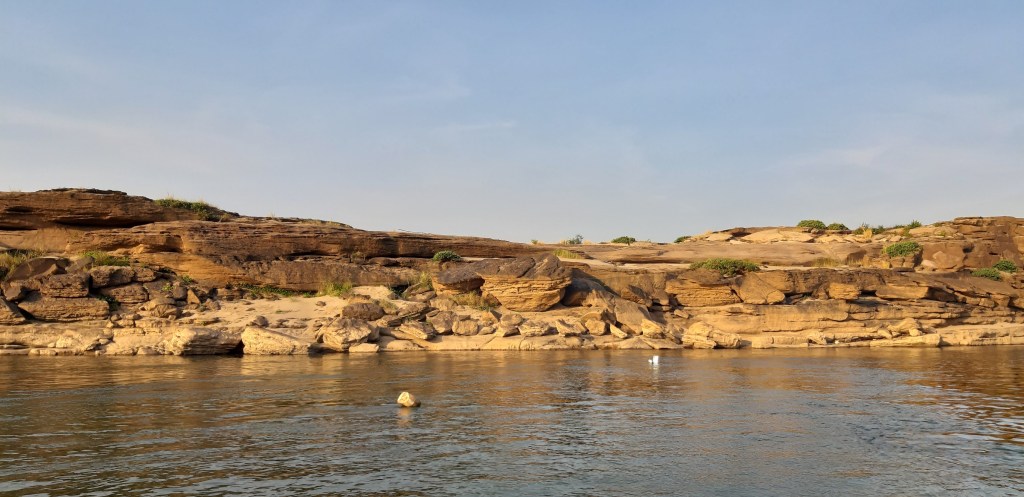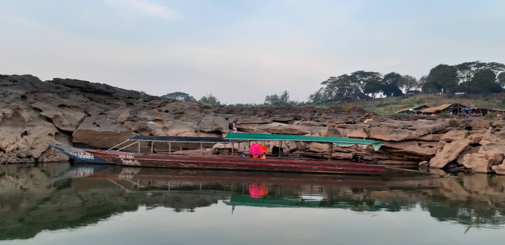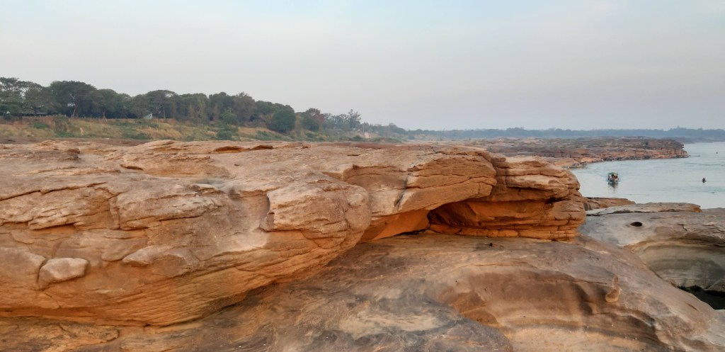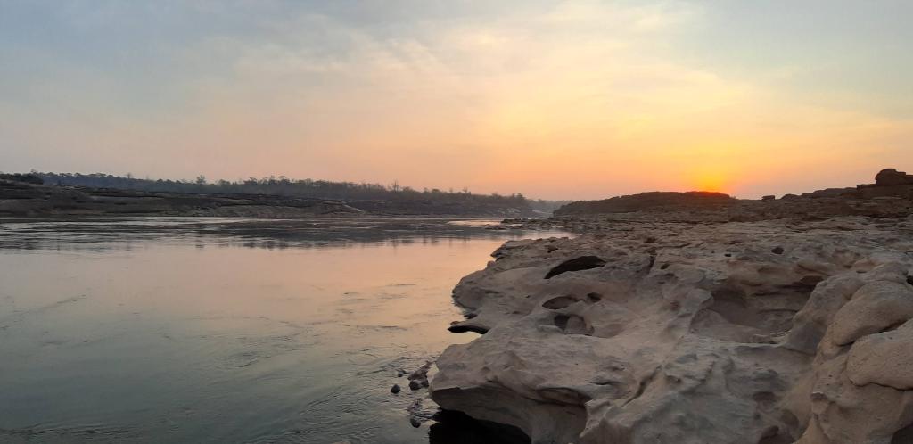 สามพันโบกต้องเช้าๆ เราเริ่มทริปที่หาดสลึง ชุมชนเล็กๆ ของ อ.โพธิ์ไทร ห่างจากตัวจังหวัดประมาณ 115 กิโลเมตร ตามทางหลวงหมายเลข 2050 (อุบลฯ – ตระการพืชผล – โพธิ์ไทร) เป็นจุดขึ้นเรือบริการของ อบต. เพื่อชมความสวยงามของสามพันโบก และแสงเช้าที่ทอแสงทองสวยงาม ค่าเรือล่องไปกลับเหมาลำ 500 บาทถือว่าไม่แพง มีคนนำเที่ยว 1 คน คนเรือ 1 คน แนะนำว่าควรนัดรอบเช้าตีห้าครึ่ง และซื้อของทานพร้อมน้ำไปด้วยนะครับ ระหว่างนั่งเรือหิวแน่นอน และต้องปีนป่าย ควรใส่เสื้อหาและรองเท้าที่กระชับ บางจุดปีนชัดเลยล่ะครับ แต่สวยงามครับ ถ้าทันพระอาทิตย์ขึ้น คือโชคดีสุดๆๆ