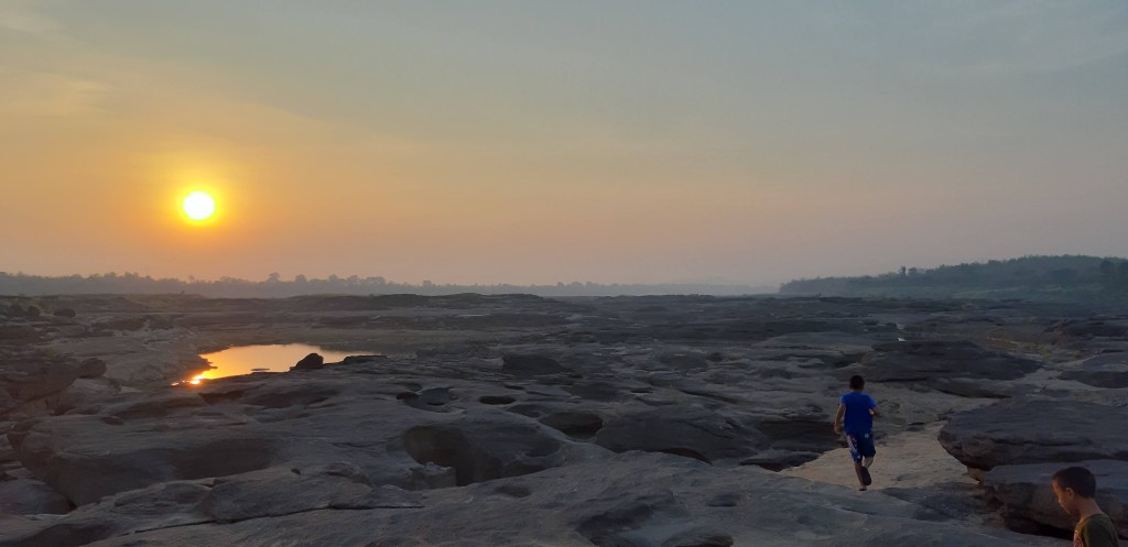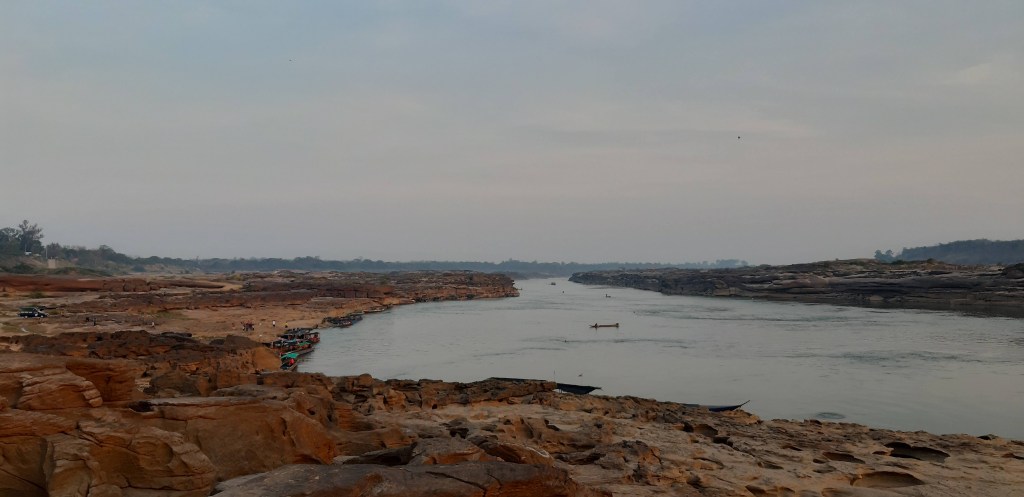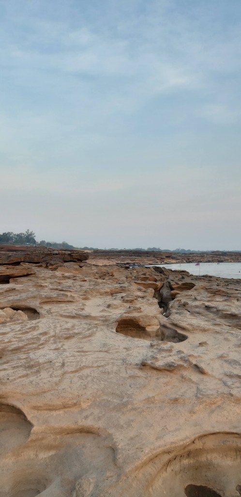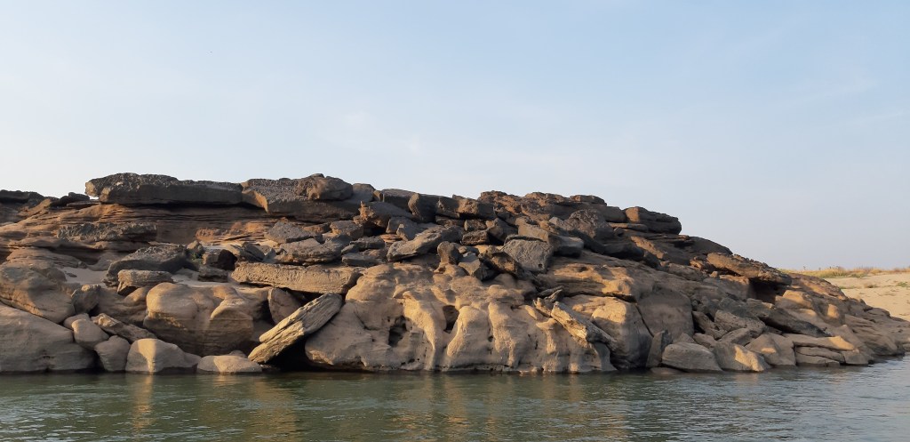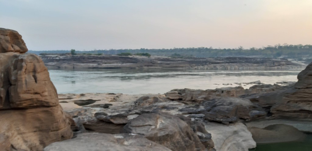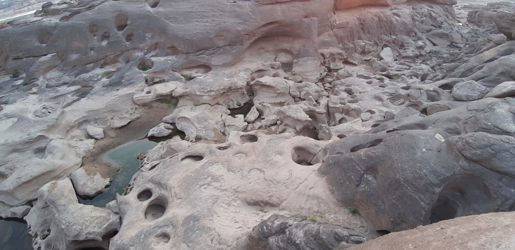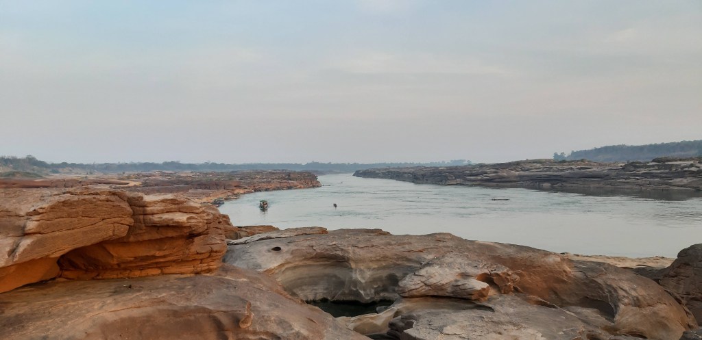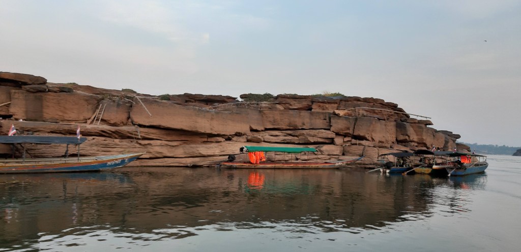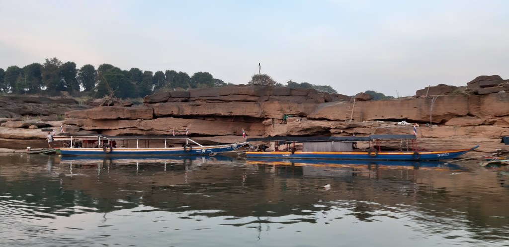 สามพันโบกต้องเช้าๆ เราเริ่มทริปที่หาดสลึง ชุมชนเล็กๆ ของ อ.โพธิ์ไทร ห่างจากตัวจังหวัดประมาณ 115 กิโลเมตร ตามทางหลวงหมายเลข 2050 (อุบลฯ – ตระการพืชผล – โพธิ์ไทร) เป็นจุดขึ้นเรือบริการของ อบต. เพื่อชมความสวยงามของสามพันโบก และแสงเช้าที่ทอแสงทองสวยงาม ค่าเรือล่องไปกลับเหมาลำ 500 บาทถือว่าไม่แพง มีคนนำเที่ยว 1 คน คนเรือ 1 คน แนะนำว่าควรนัดรอบเช้าตีห้าครึ่ง และซื้อของทานพร้อมน้ำไปด้วยนะครับ ระหว่างนั่งเรือหิวแน่นอน และต้องปีนป่าย ควรใส่เสื้อหาและรองเท้าที่กระชับ บางจุดปีนชัดเลยล่ะครับ แต่สวยงามครับ ถ้าทันพระอาทิตย์ขึ้น คือโชคดีสุดๆๆ