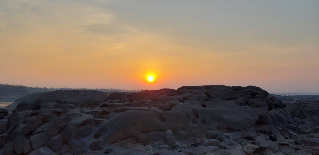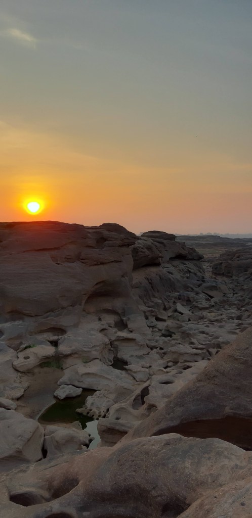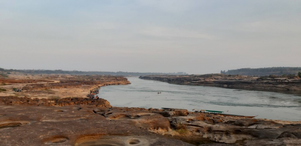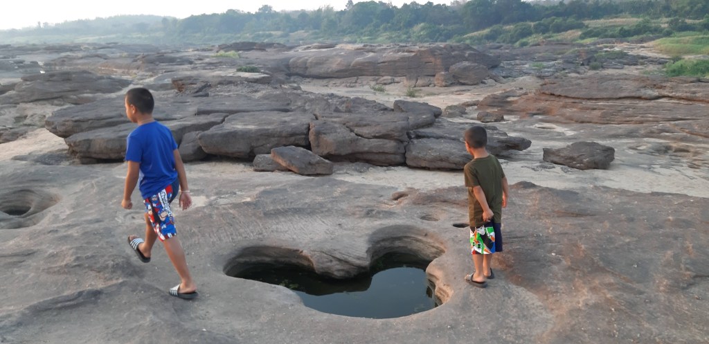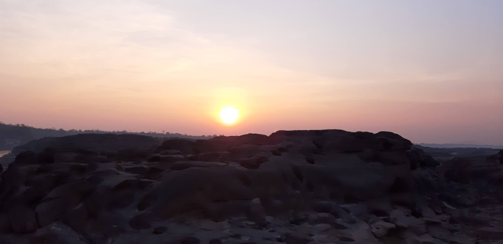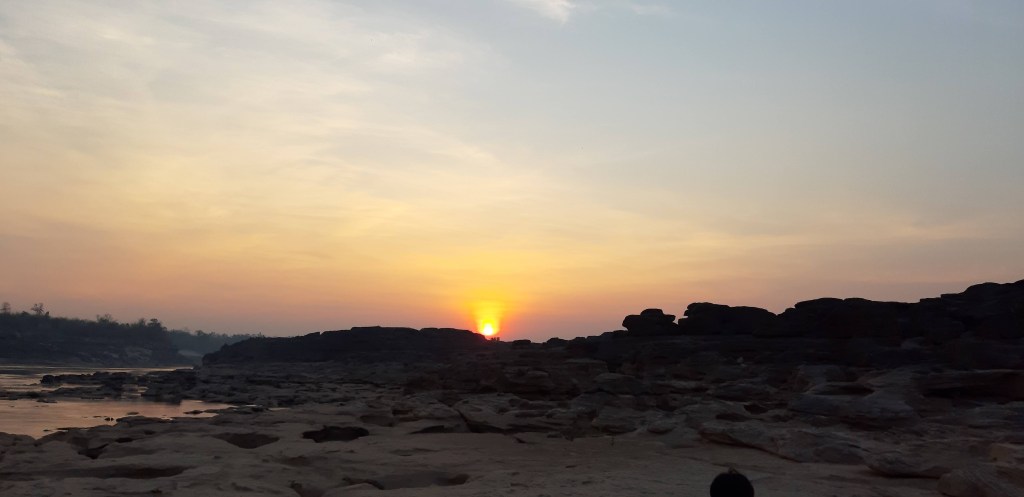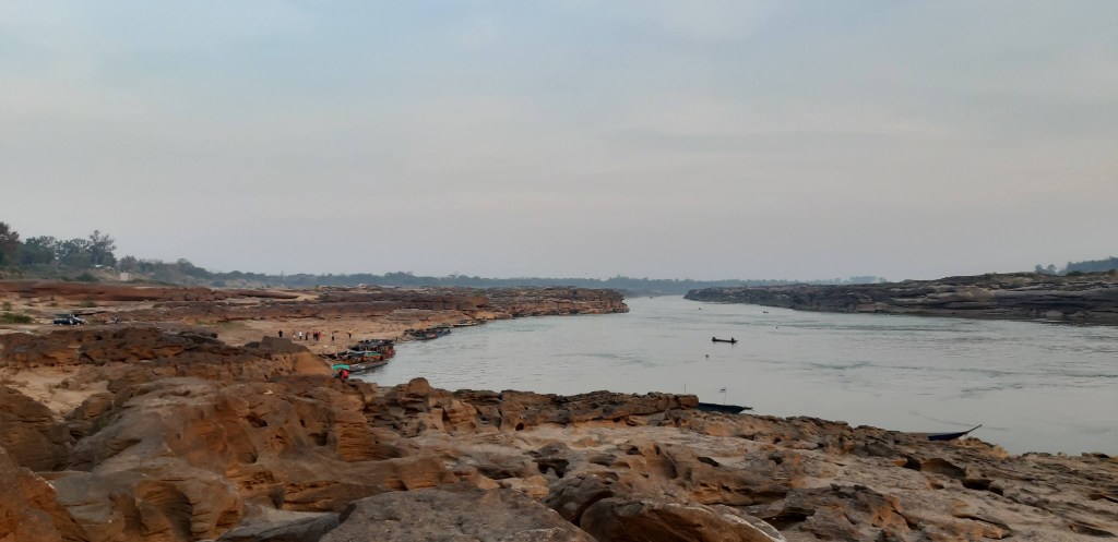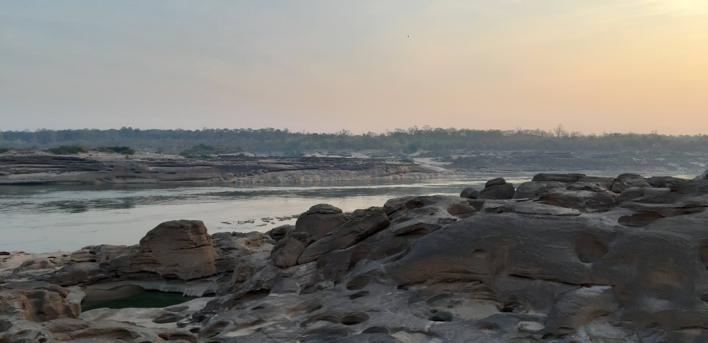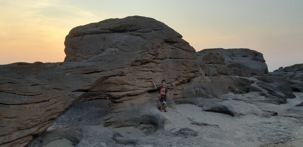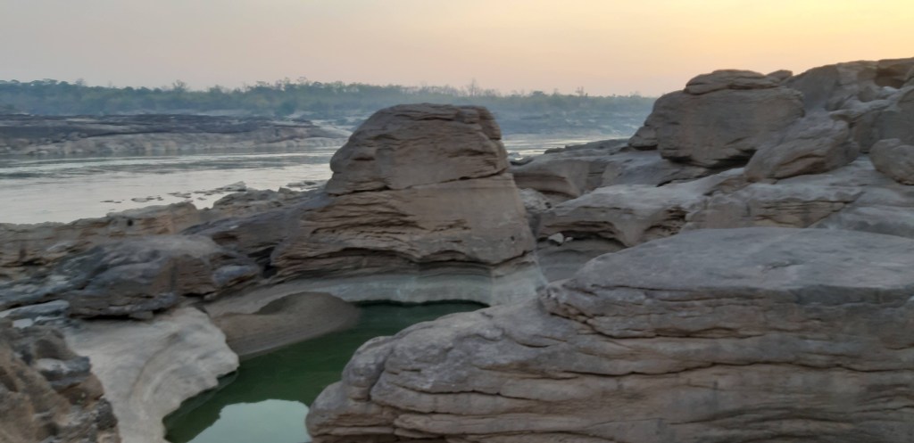 สามพันโบกต้องเช้าๆ เราเริ่มทริปที่หาดสลึง ชุมชนเล็กๆ ของ อ.โพธิ์ไทร ห่างจากตัวจังหวัดประมาณ 115 กิโลเมตร ตามทางหลวงหมายเลข 2050 (อุบลฯ – ตระการพืชผล – โพธิ์ไทร) เป็นจุดขึ้นเรือบริการของ อบต. เพื่อชมความสวยงามของสามพันโบก และแสงเช้าที่ทอแสงทองสวยงาม ค่าเรือล่องไปกลับเหมาลำ 500 บาทถือว่าไม่แพง มีคนนำเที่ยว 1 คน คนเรือ 1 คน แนะนำว่าควรนัดรอบเช้าตีห้าครึ่ง และซื้อของทานพร้อมน้ำไปด้วยนะครับ ระหว่างนั่งเรือหิวแน่นอน และต้องปีนป่าย ควรใส่เสื้อหาและรองเท้าที่กระชับ บางจุดปีนชัดเลยล่ะครับ แต่สวยงามครับ ถ้าทันพระอาทิตย์ขึ้น คือโชคดีสุดๆๆ