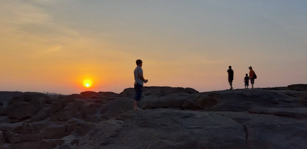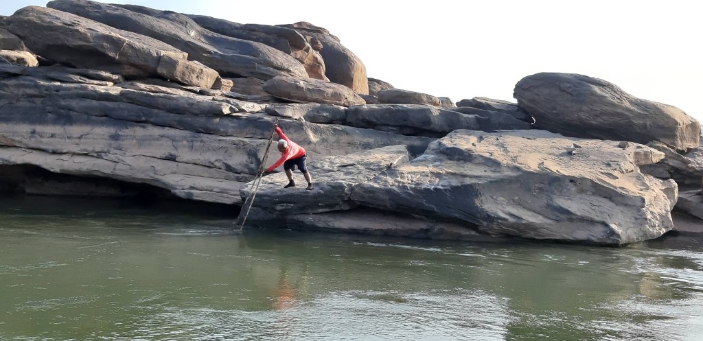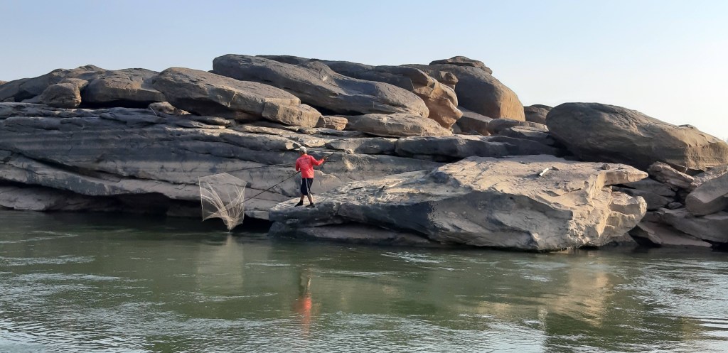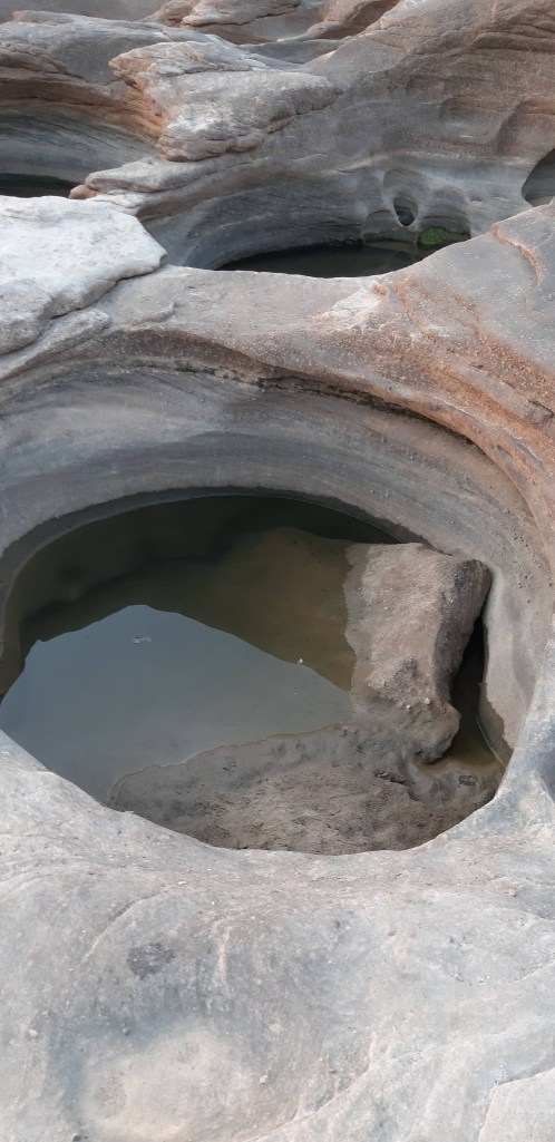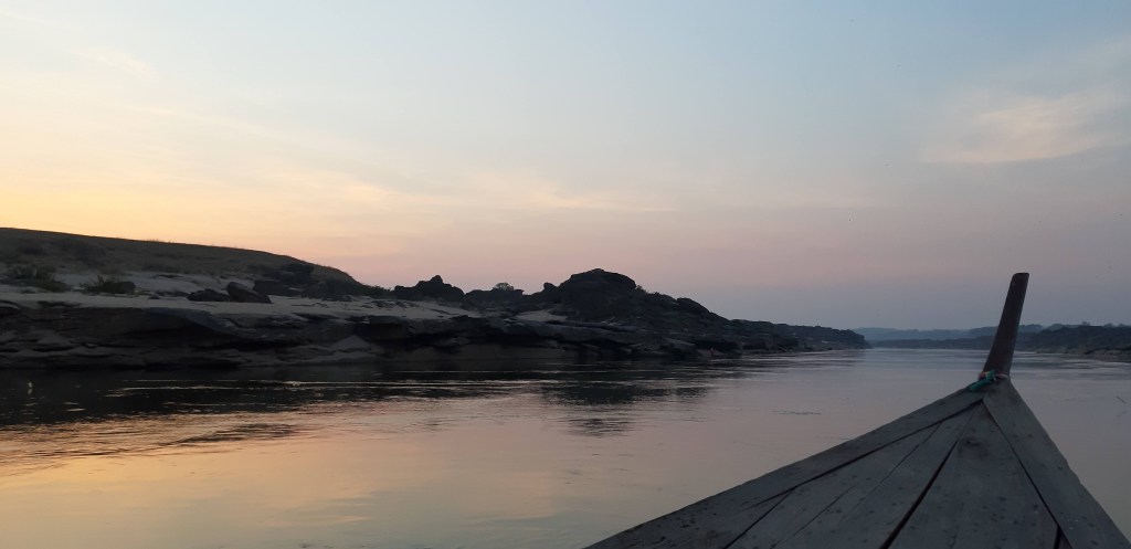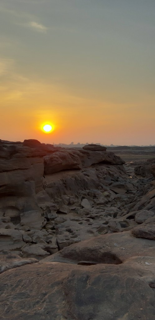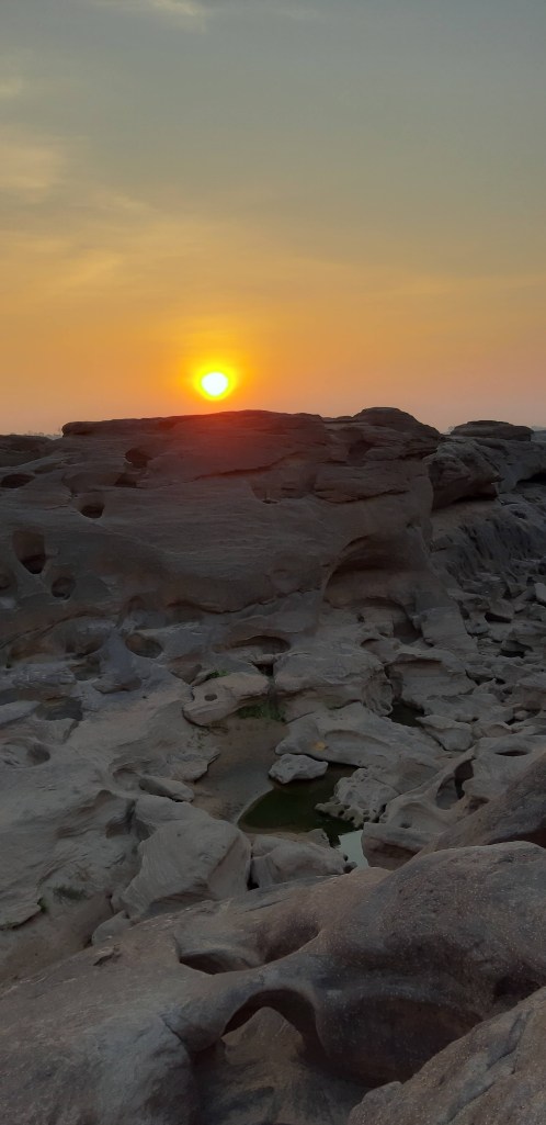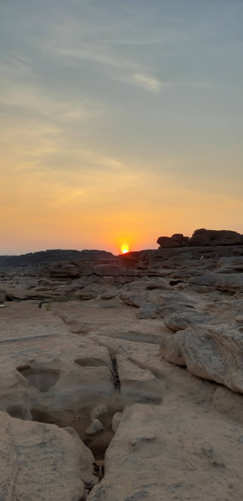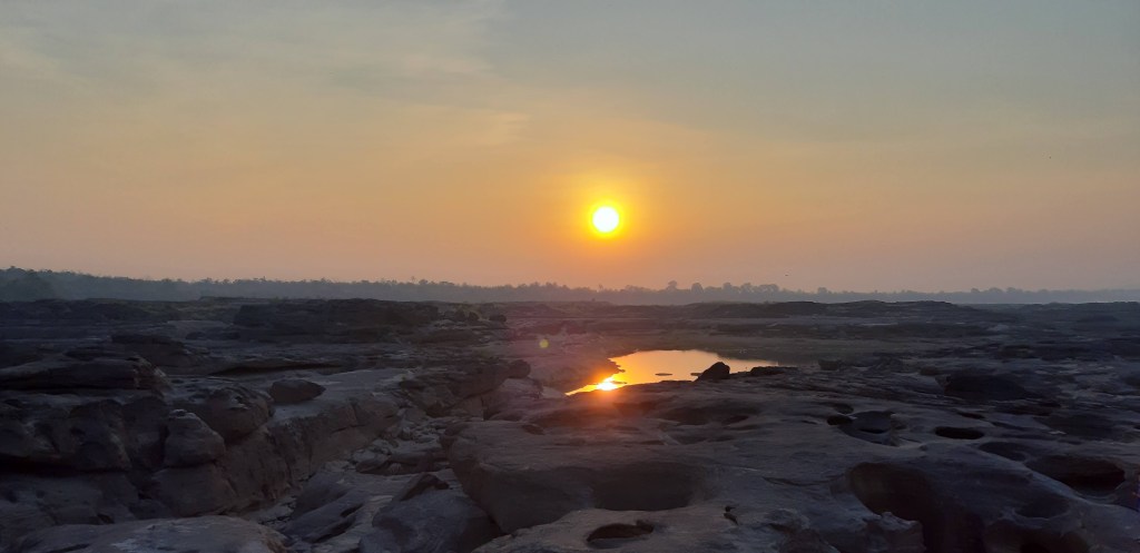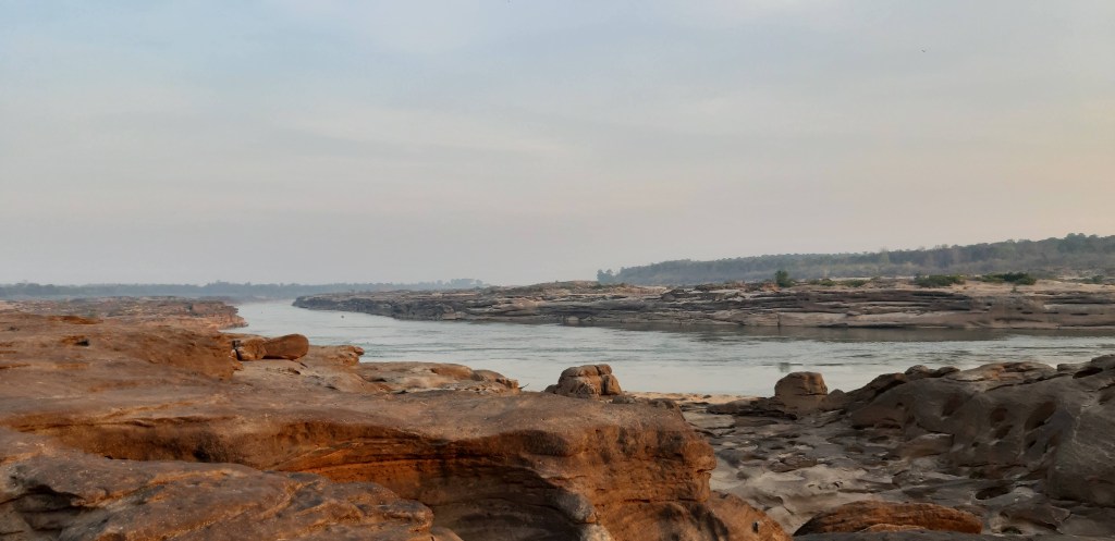 สามพันโบกต้องเช้าๆ เราเริ่มทริปที่หาดสลึง ชุมชนเล็กๆ ของ อ.โพธิ์ไทร ห่างจากตัวจังหวัดประมาณ 115 กิโลเมตร ตามทางหลวงหมายเลข 2050 (อุบลฯ – ตระการพืชผล – โพธิ์ไทร) เป็นจุดขึ้นเรือบริการของ อบต. เพื่อชมความสวยงามของสามพันโบก และแสงเช้าที่ทอแสงทองสวยงาม ค่าเรือล่องไปกลับเหมาลำ 500 บาทถือว่าไม่แพง มีคนนำเที่ยว 1 คน คนเรือ 1 คน แนะนำว่าควรนัดรอบเช้าตีห้าครึ่ง และซื้อของทานพร้อมน้ำไปด้วยนะครับ ระหว่างนั่งเรือหิวแน่นอน และต้องปีนป่าย ควรใส่เสื้อหาและรองเท้าที่กระชับ บางจุดปีนชัดเลยล่ะครับ แต่สวยงามครับ ถ้าทันพระอาทิตย์ขึ้น คือโชคดีสุดๆๆ