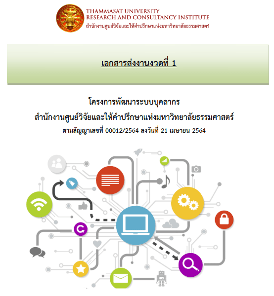 ประชุมพิจารณาตรวจรับงานงวดที่ 1 พัฒนาระบบบุคลากร สำนักงานศูนย์วิจัยและให้คำปรึกษาแห่งมหาวิทยาลัยธรรมศาสตร์ ในวันที่ 1 มิถุนายน 2564