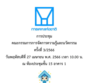 27 April 20232 March 2025 boonlertaroonpiboon ประชุมคณะกรรมการการจัดการความรู้และนวัตกรรมครั้งที่ 3/2566 ประชุมคณะกรรมการการจัดการความรู้และนวัตกรรมครั้งที่ 3/2566 การเคหะแห่งชาติ Share this:Share Email a link to a friend (Opens in new window) Email Print (Opens in new window) Print Share on Facebook (Opens in new window) Facebook Like Loading... ที่เกี่ยวข้อง