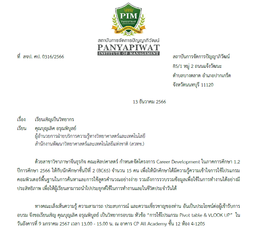 9 January 202424 October 2025 boonlertaroonpiboon วิทยากรสถาบันปัญญาภิวัฒน์ วิทยากรการใช้งาน Microsoft Excel ในส่วน Pivot Table & VLookUp Share this:Share Email a link to a friend (Opens in new window) Email Print (Opens in new window) Print Share on Facebook (Opens in new window) Facebook Like Loading... ที่เกี่ยวข้อง