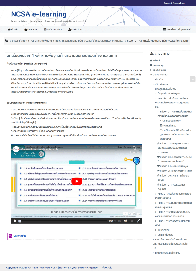 เรียนออนไลน์ในหัวข้อ ความรู้พื้นฐานด้านการรักษาความมั่นคงปลอดภัยสารสนเทศ ภายใต้โครงการเร่งรัดการพัฒนาบุคลากรด้านความมั่นคงปลอดภัยไซเบอร์ (Intensive Cybersecurity Capacity Building Program) ระยะที่ 1 โดยสำนักงานคณะกรรมการการรักษาความมั่นคงปลอดภัยไซเบอร์แห่งชาติ (สกมช.)