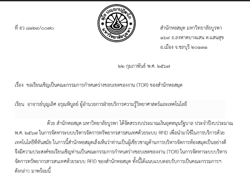 22 February 20241 April 2026 boonlertaroonpiboon ประชุมคณะกรรมการกำหนดร่างขอบเขตของงาน (TOR) สำนักหอสมุด ม.บูรพา Share this:Share Email a link to a friend (Opens in new window) Email Print (Opens in new window) Print Share on Facebook (Opens in new window) Facebook Like Loading... ที่เกี่ยวข้อง