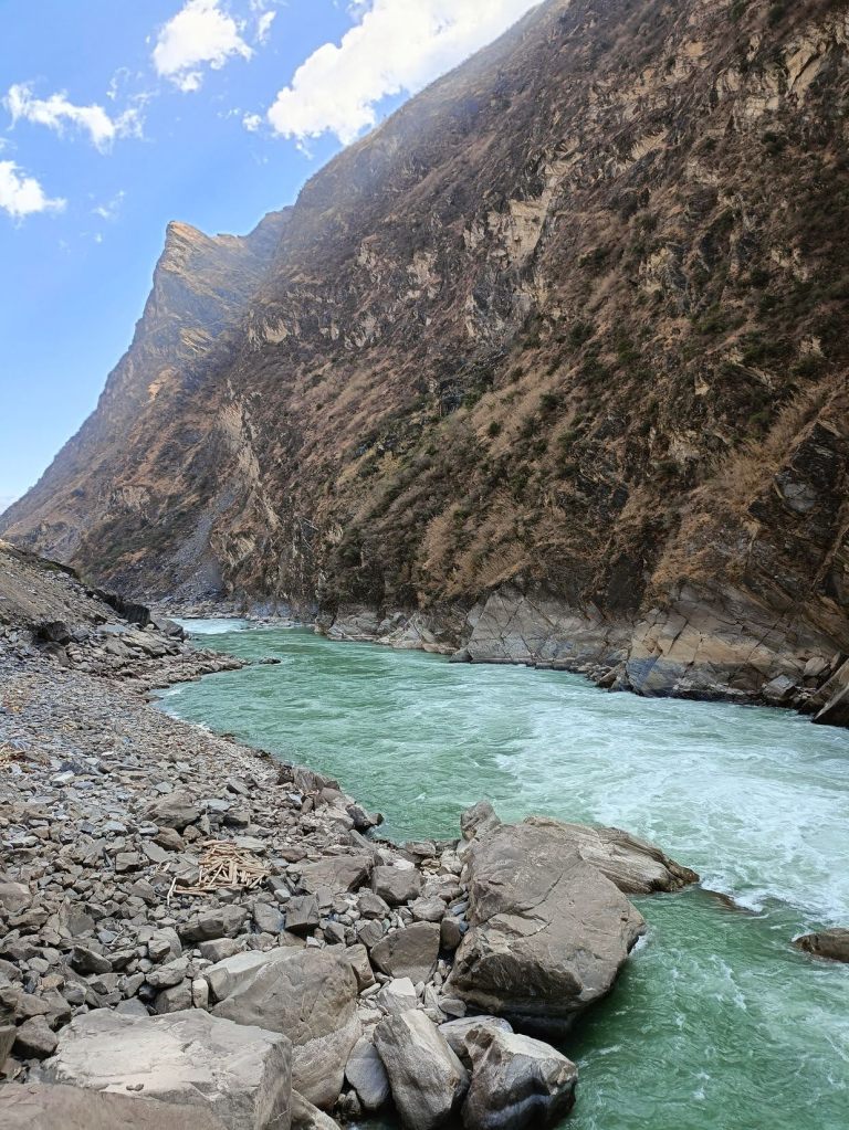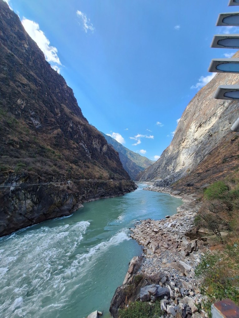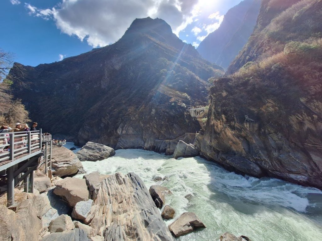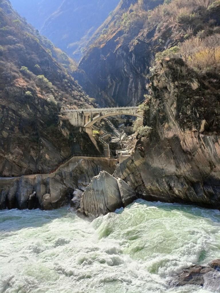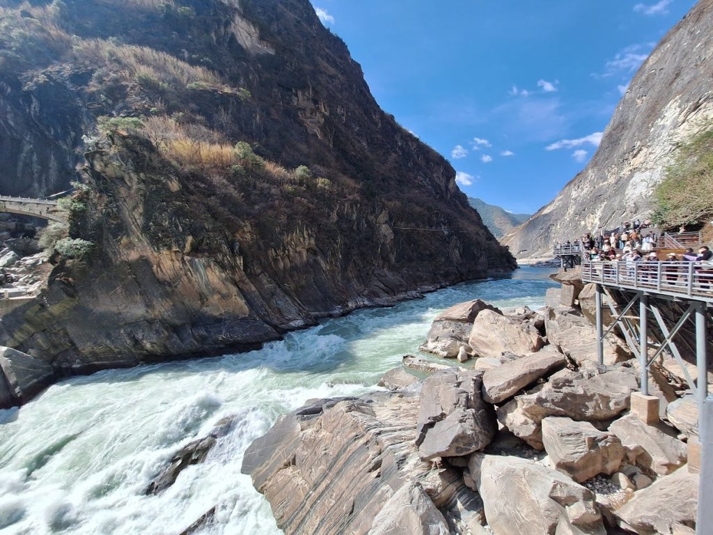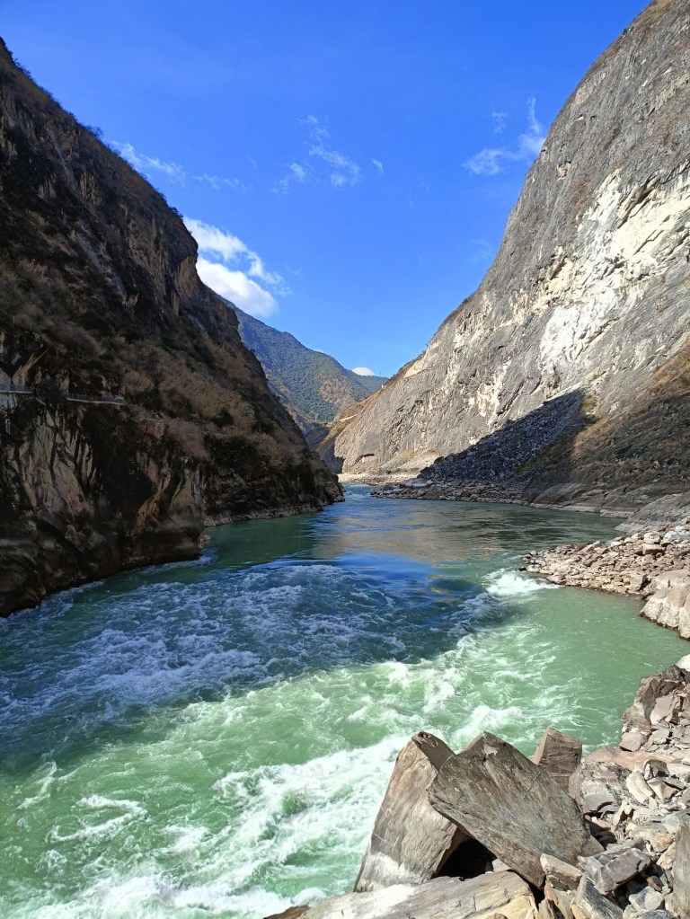 เป้าหมายแรกคือ หุบเขาเสือกระโจน (Tiger Leaping Gorge) เป็นหุบเขาลึกที่มีชื่อเสียงระดับโลกอยู่ทางตอนเหนือของเมืองลี่เจียง มณฑลยูนนาน ประเทศจีน เล่ากันว่าเคยมีเสือตัวหนึ่งถูกนักล่าตามล่ามันวิ่งหนีมาถึงหุบเขาแล้วกระโจนจากฝั่งหนึ่งไปอีกฝั่งหนึ่งโดยใช้โขดหินกลางน้ำเป็นฐานทำให้หุบเขานี้ได้ชื่อว่า หุบเขาเสือกระโจน