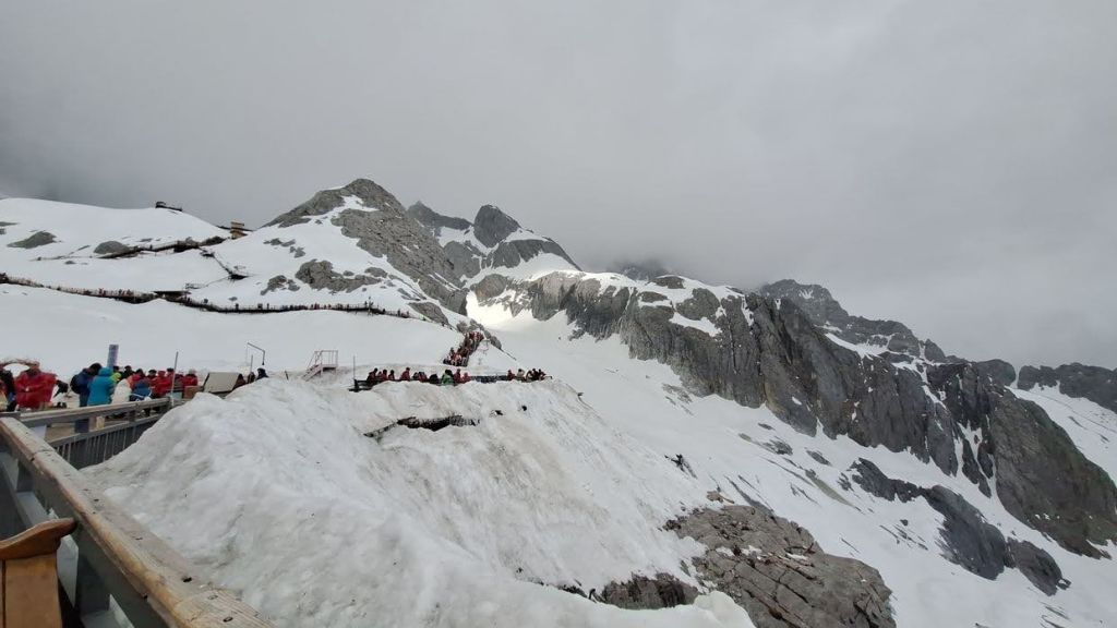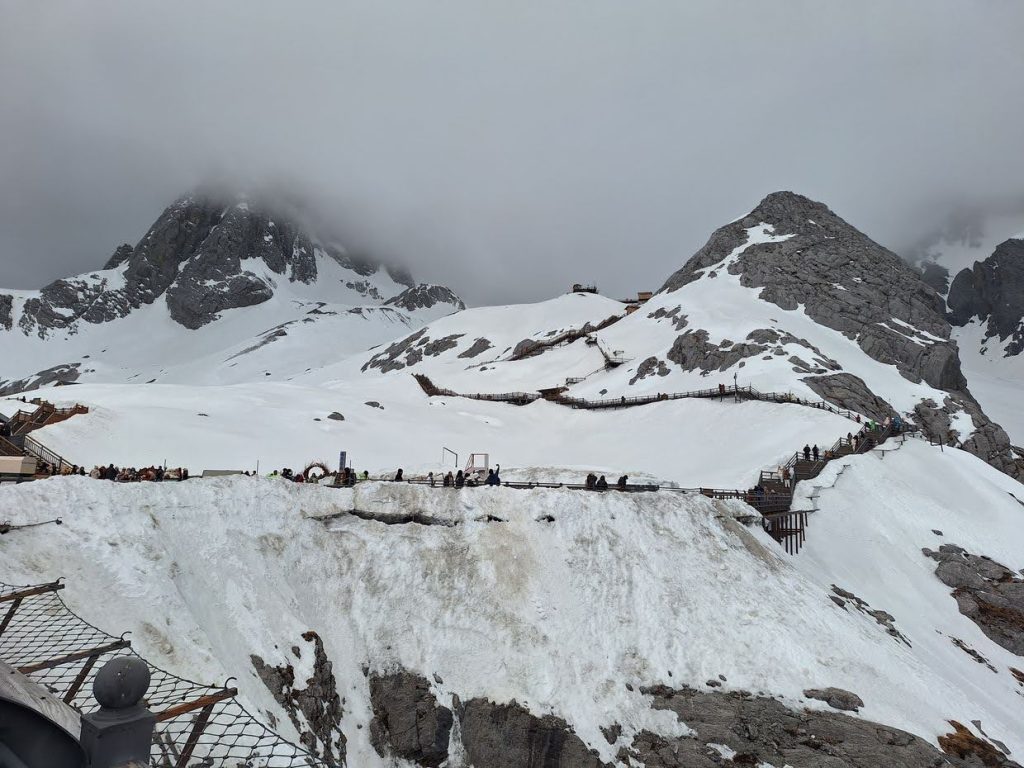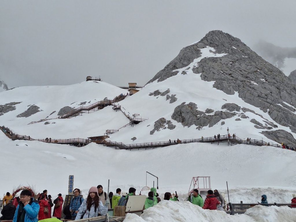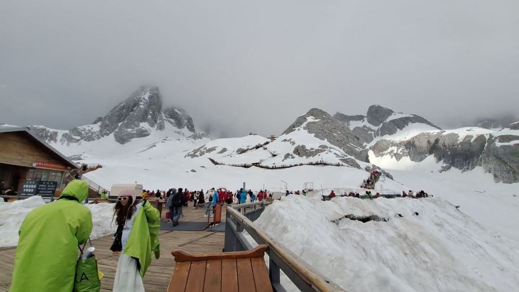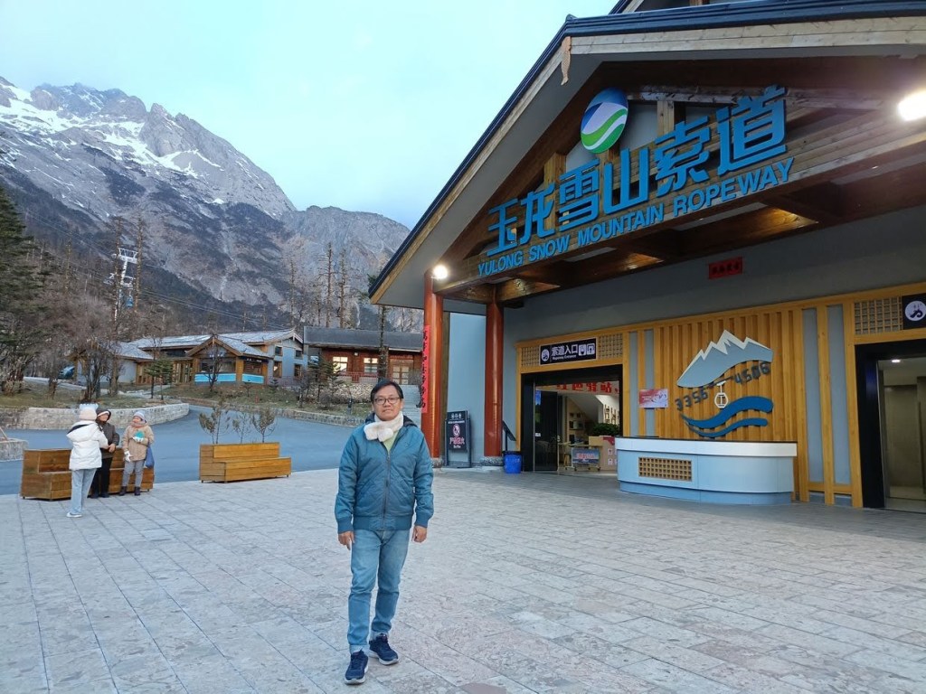 เป้าหมายวันนี้คือขึ้น ภูเชาหิมะมังกรหยก เลยต้องตื่นเช้ามากๆๆๆ เร่งทานมื้อเช้าก่อนเดินทางเข้าอุทยาน ภูเขาหิมะมังกรหยก (Jade Dragon Snow Mountain) หนึ่งในสถานที่ท่องเที่ยวระดับ 5A ของ #จีน ที่โดนใจอีกแห่งในทริปคุนหมิง … คณะออกจากที่พักตีห้าสี่สิบ มาถึงประมาณเจ็ดโมงเช้า รถต่างๆ ต้องจอดที่จุดจอดด้านล่าง แล้วขึ้นรถบัสของที่ทำงานเพื่อไปยังจุดขึ้นกระเช้า ขึ้นกระเช้าเป็นชุดแรกๆ แบบชิวมาก ไม่ต้องรอคิวนาน … ตื่นเช้ามาเร็วก็สะดวกมากมาย ไม่ต้องเจอกับเหตุการณ์แย่งแซงคิว .. ด้วยความสูงเหนือระดับน้ำทะเลค่อนข้างมาก หลายคนอาจจะมีอาการแพ้ที่สูง จึงต้องอัดออกซิเจนแบบกระป๋อง ด้านบนใครไหวก็เดินถ่ายรูปชิวๆ ใครไม่ไหวก็หาที่พักในอาคารแบบปิด หาอะไรร้อนๆ ทาน ก็ช่วยได้เยอะครับ