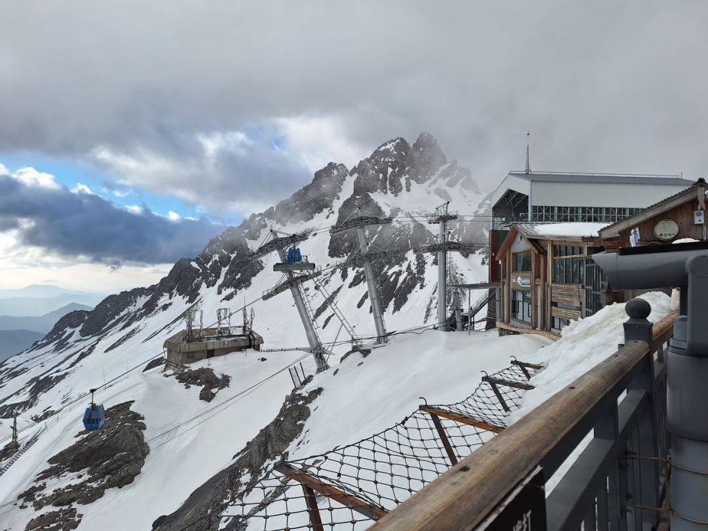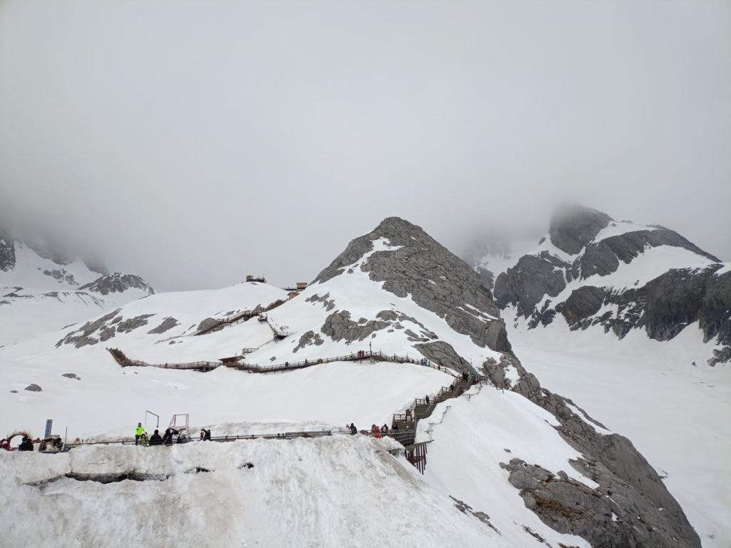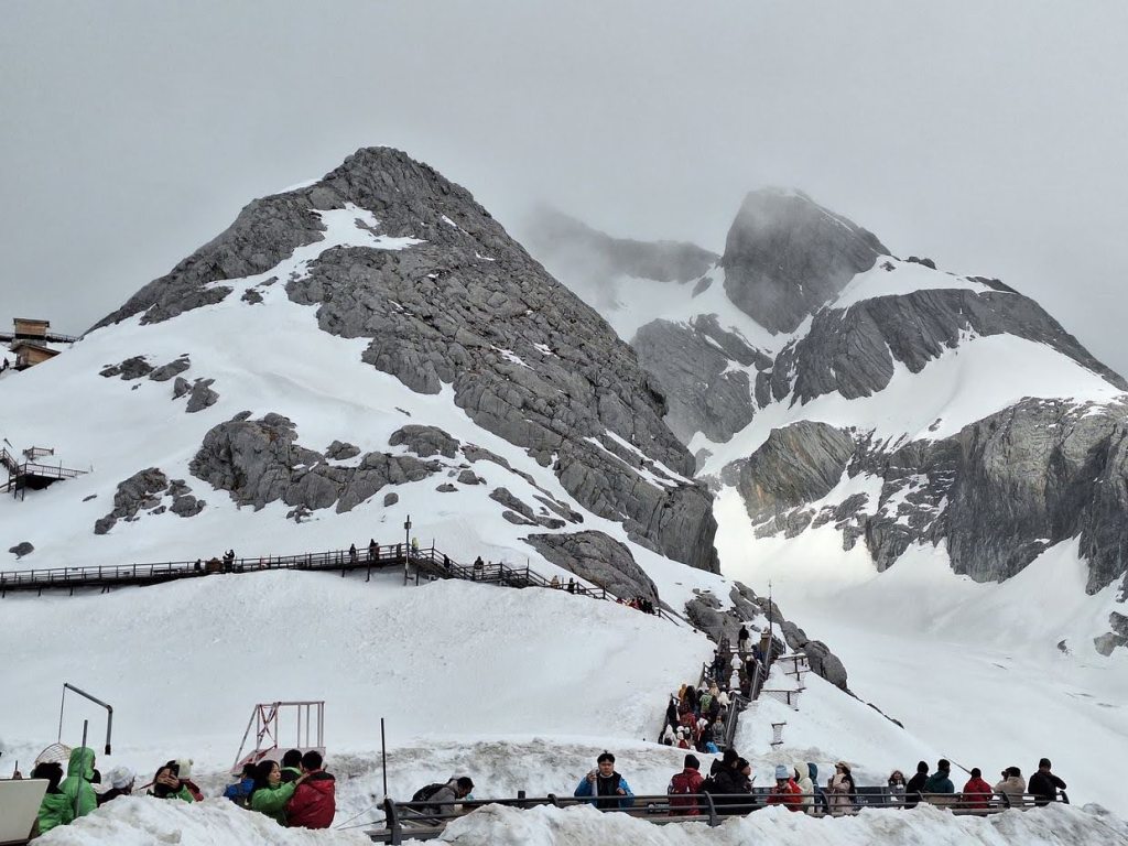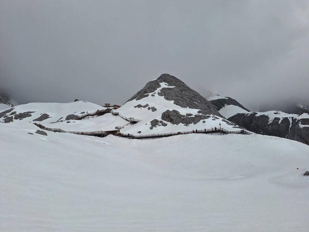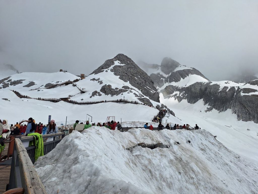 เป้าหมายวันนี้คือขึ้น ภูเชาหิมะมังกรหยก เลยต้องตื่นเช้ามากๆๆๆ เร่งทานมื้อเช้าก่อนเดินทางเข้าอุทยาน ภูเขาหิมะมังกรหยก (Jade Dragon Snow Mountain) หนึ่งในสถานที่ท่องเที่ยวระดับ 5A ของ #จีน ที่โดนใจอีกแห่งในทริปคุนหมิง … คณะออกจากที่พักตีห้าสี่สิบ มาถึงประมาณเจ็ดโมงเช้า รถต่างๆ ต้องจอดที่จุดจอดด้านล่าง แล้วขึ้นรถบัสของที่ทำงานเพื่อไปยังจุดขึ้นกระเช้า ขึ้นกระเช้าเป็นชุดแรกๆ แบบชิวมาก ไม่ต้องรอคิวนาน … ตื่นเช้ามาเร็วก็สะดวกมากมาย ไม่ต้องเจอกับเหตุการณ์แย่งแซงคิว .. ด้วยความสูงเหนือระดับน้ำทะเลค่อนข้างมาก หลายคนอาจจะมีอาการแพ้ที่สูง จึงต้องอัดออกซิเจนแบบกระป๋อง ด้านบนใครไหวก็เดินถ่ายรูปชิวๆ ใครไม่ไหวก็หาที่พักในอาคารแบบปิด หาอะไรร้อนๆ ทาน ก็ช่วยได้เยอะครับ