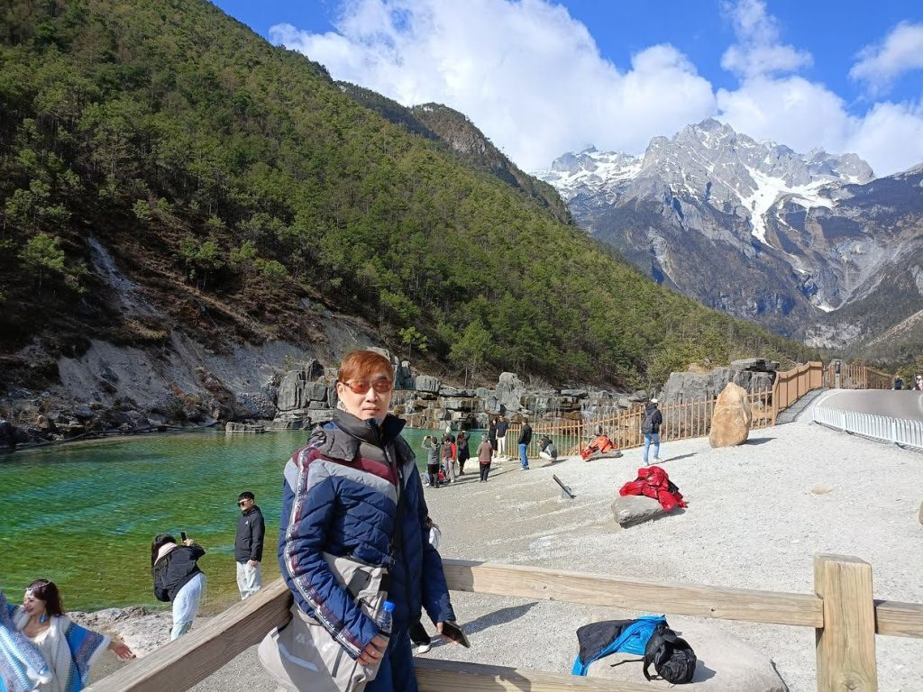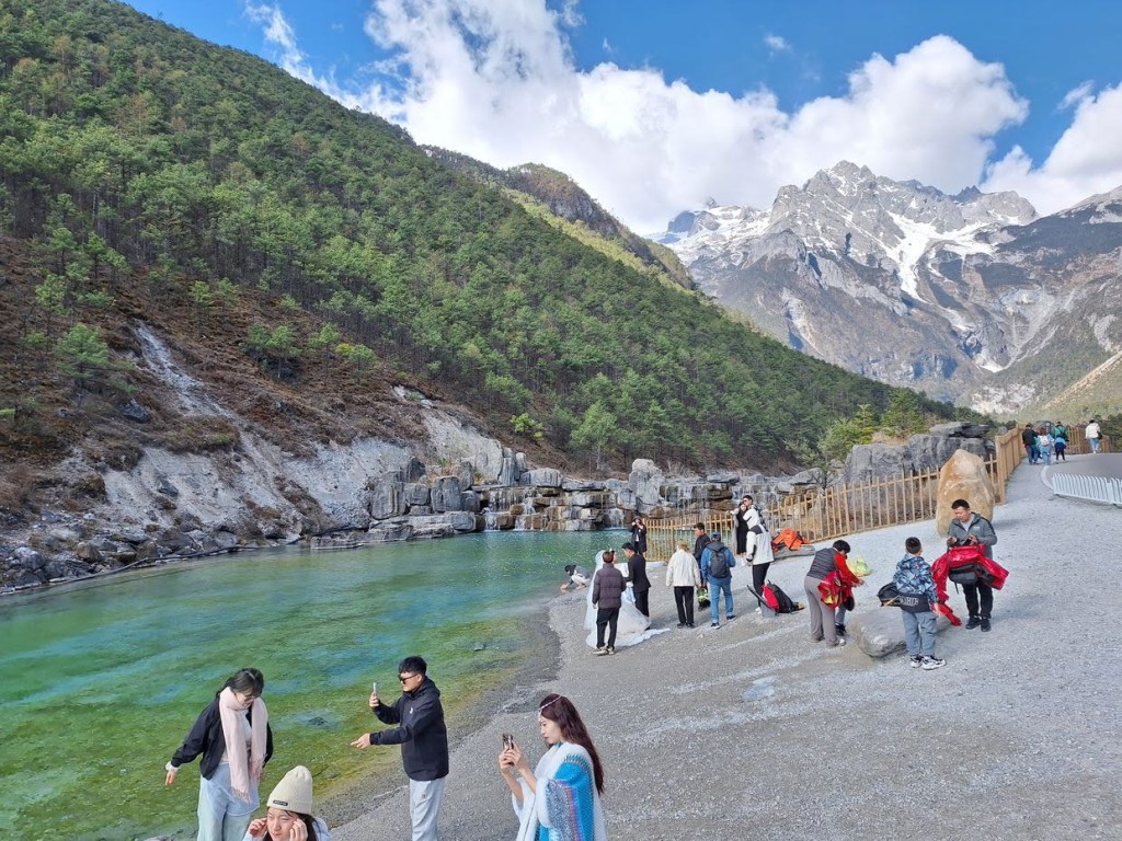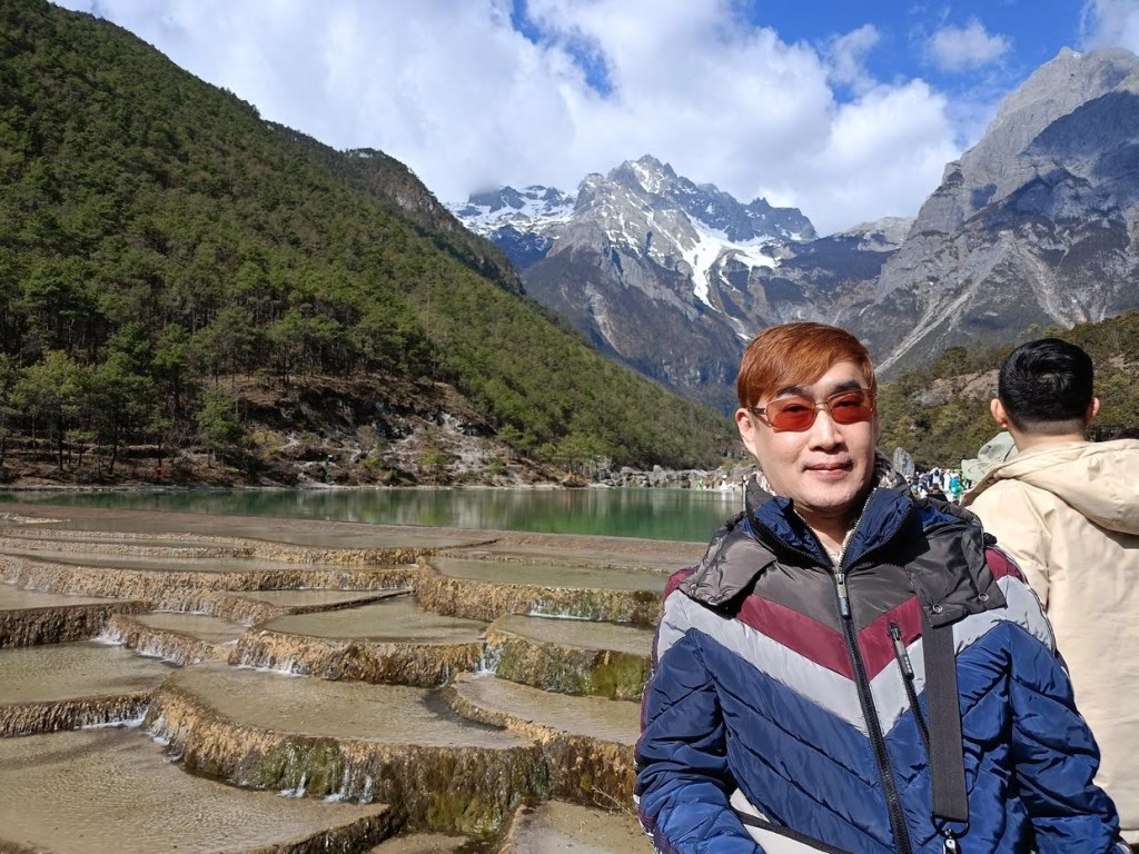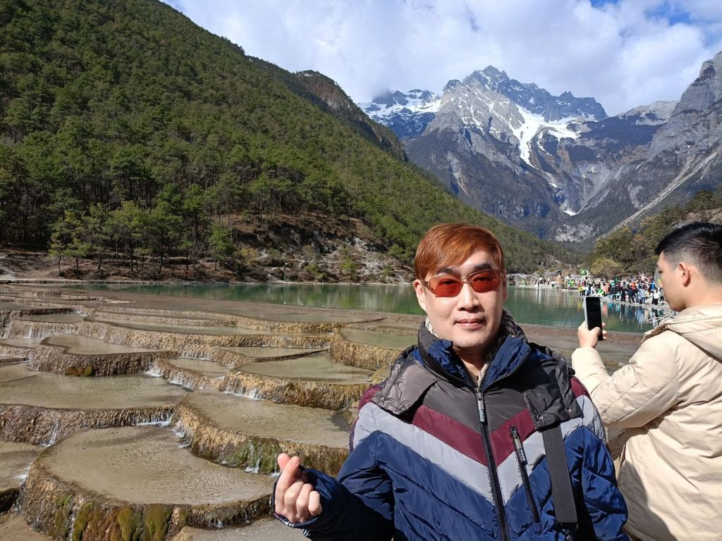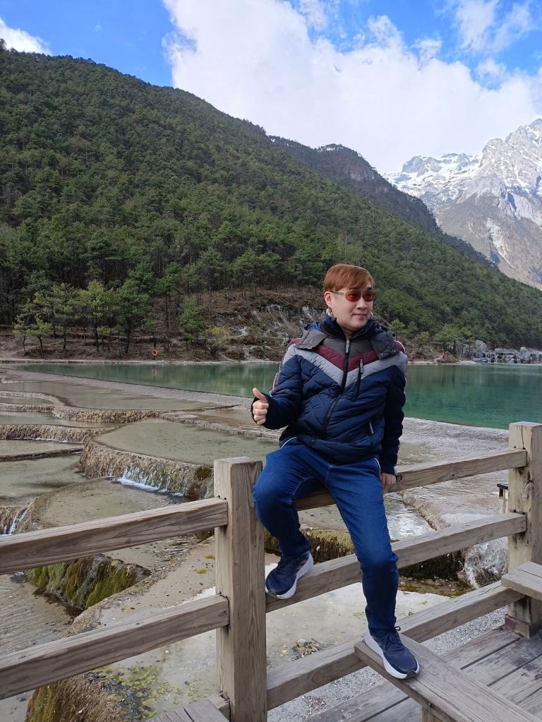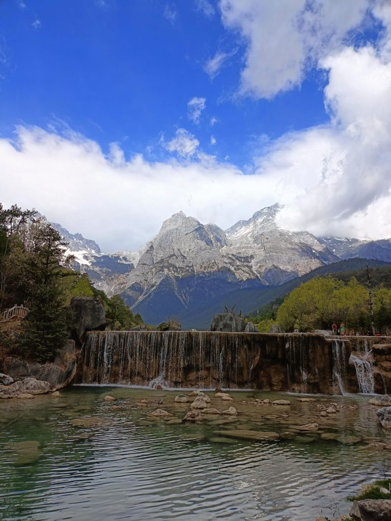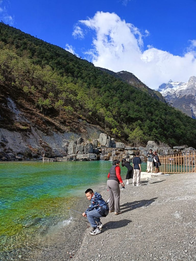 หุบเขาพระจันทร์สีน้ำเงิน ไป๋สุ่ยเห่อ .. อีกหนึ่งไฮไลต์ของทริปคุนหมิง .. อยู่ในพื้นที่เดียวกับภูเขาหิมะมังกรหยก … หลังจากขึ้นไปบนยอดเขา ก็จะลงมาที่หุบเขาแห่งนี้ ซึ่งได้วิวภูเขาพร้อมแอ่งน้ำที่ซ้อนๆกัน น้ำใสมาก สีฟ้าเขียว แบลคกราวด์เป็นภูเขาหิมะมังกรหยก สวยงามมาก