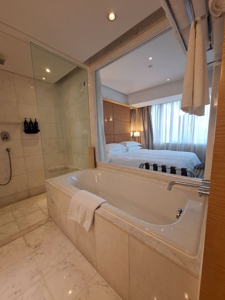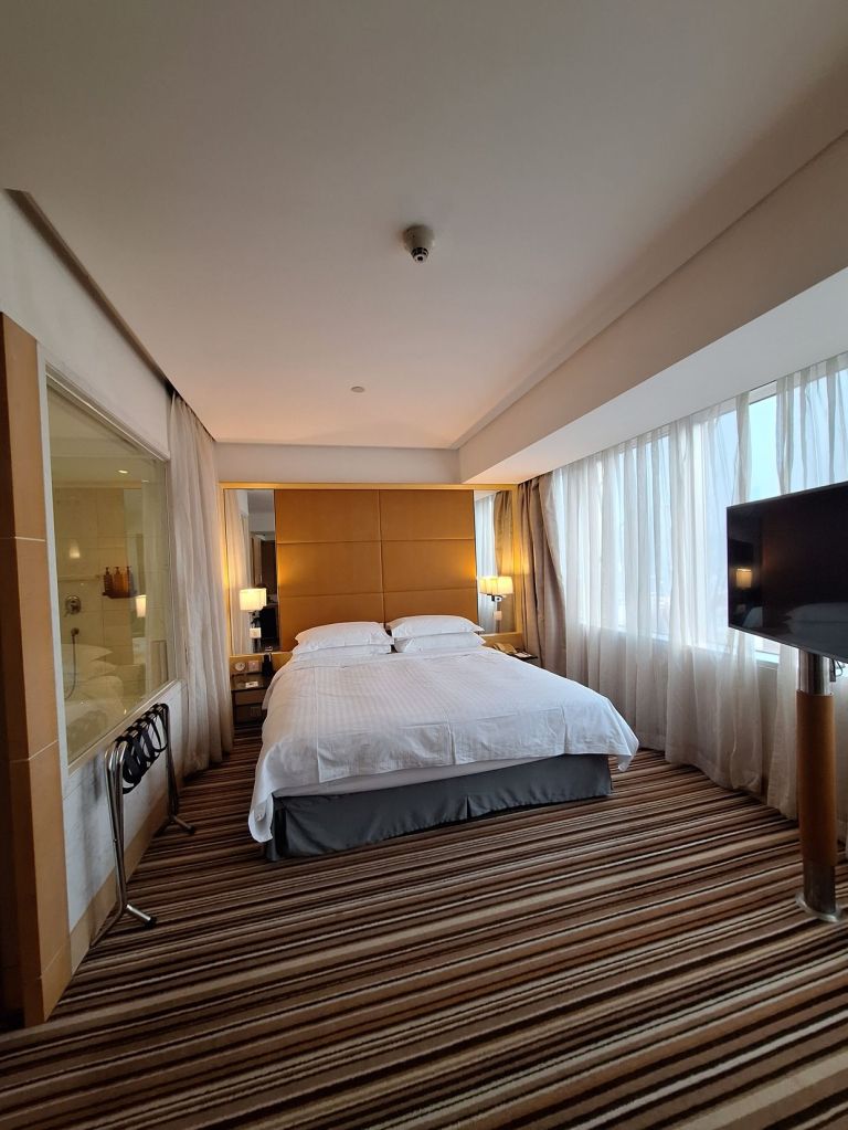อิ่มท้องก็กลับ รร … ได้ห้องเลย สะดวกดีห้องพักกว้างชอบกำแพงฝั่งหนึ่งเป็นกระจกยาว วิวสวย ห้องน้ำโอเคมีอ่างแช่ ราคาคือตรงกับฟังก์ชั้นของ รร มาก อาหารเช้าก็คือเยอะมาก คนไม่ถึงกับแน่น นั่งทานได้ชิวๆ ไม่มีเสียงดังแบบน่ารำคาญ ชอบเลยละ รร นี้ สถานีรถไฟใต้ดินสาย 13 ชื่อสถานี Middle Huaihai Road ก็อยู่ตรงข้ามโรงแรม สะดวกมากมาย แนะนำให้สแกน WeChat เพื่อติดต่อกับโรงแรม (รร. ที่จีนก็จะใช้การติดต่อทาง WeChat เป็นส่วนมาก)