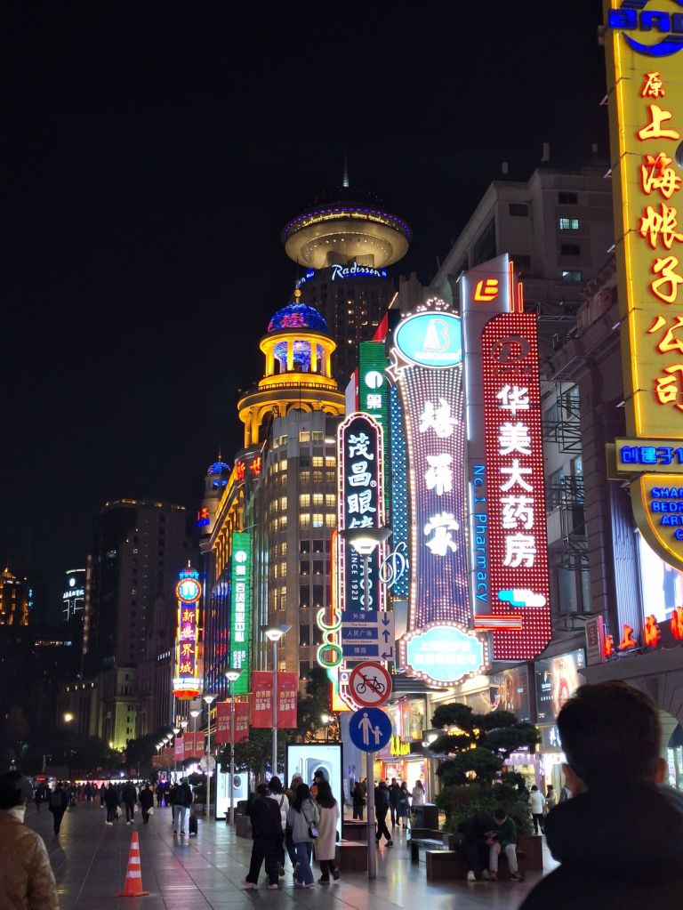 ช่วงเย็นค่ำของวันแรกทริปเซี่ยงไฮ้ เราจัดแถว East Nanjing Road .. เก็บตั้งแต่ Pop Mart ยาวไปถึง M&M … แสงสีเซี่ยงไฮ้นี่ทำถึงมาก สวยงามโดนใจจริงๆ มื้อค่ำก็จัดเป็นร้านอาหารแนวตามสั่ง เราหมูผัดพริกรสชาติเผ็ดนิดๆ แต่อร่อยมาก ยิ่งปลานึ่งยิ่งอร่อย รสชาติผ่านทั้งสองอย่าง