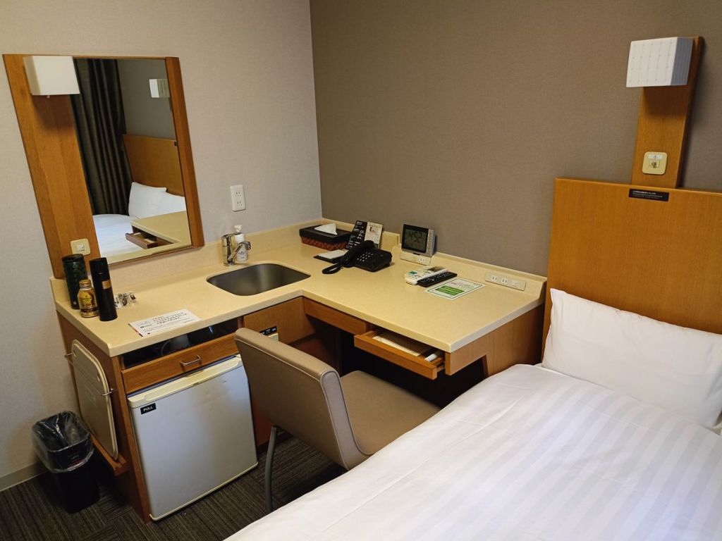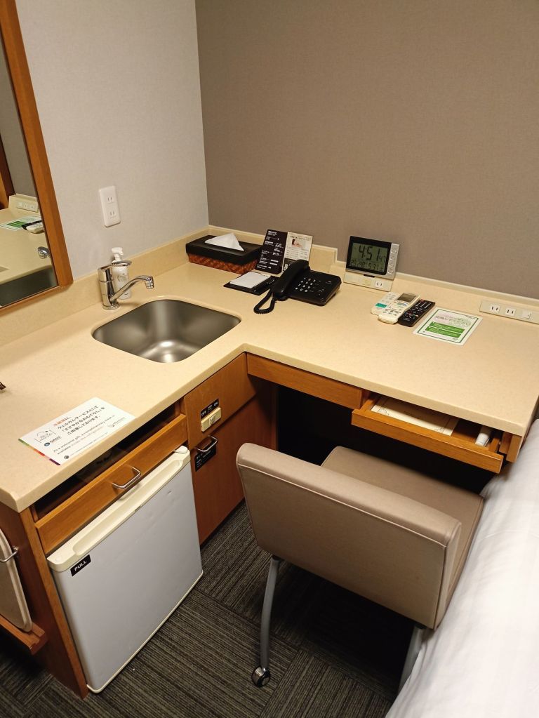ถึงสนานีรถไฟ Toyama ก็นั่ง Taxi ไปที่พัก โรงแรม Dormy Inn ห้องพักโอเคมาก โรงแรมก็คือดีมากๆ เช่นกัน มี Welcome Gift ต้อนรับ และยังมี Free Service อีกหลายอย่างที่โดนใจ