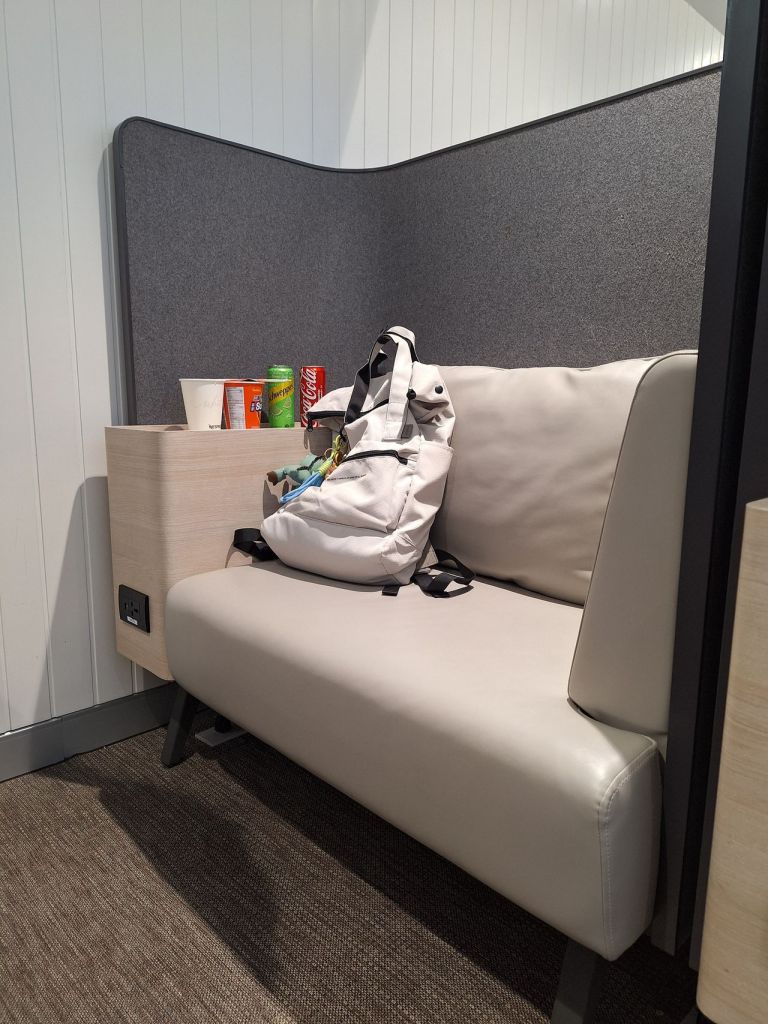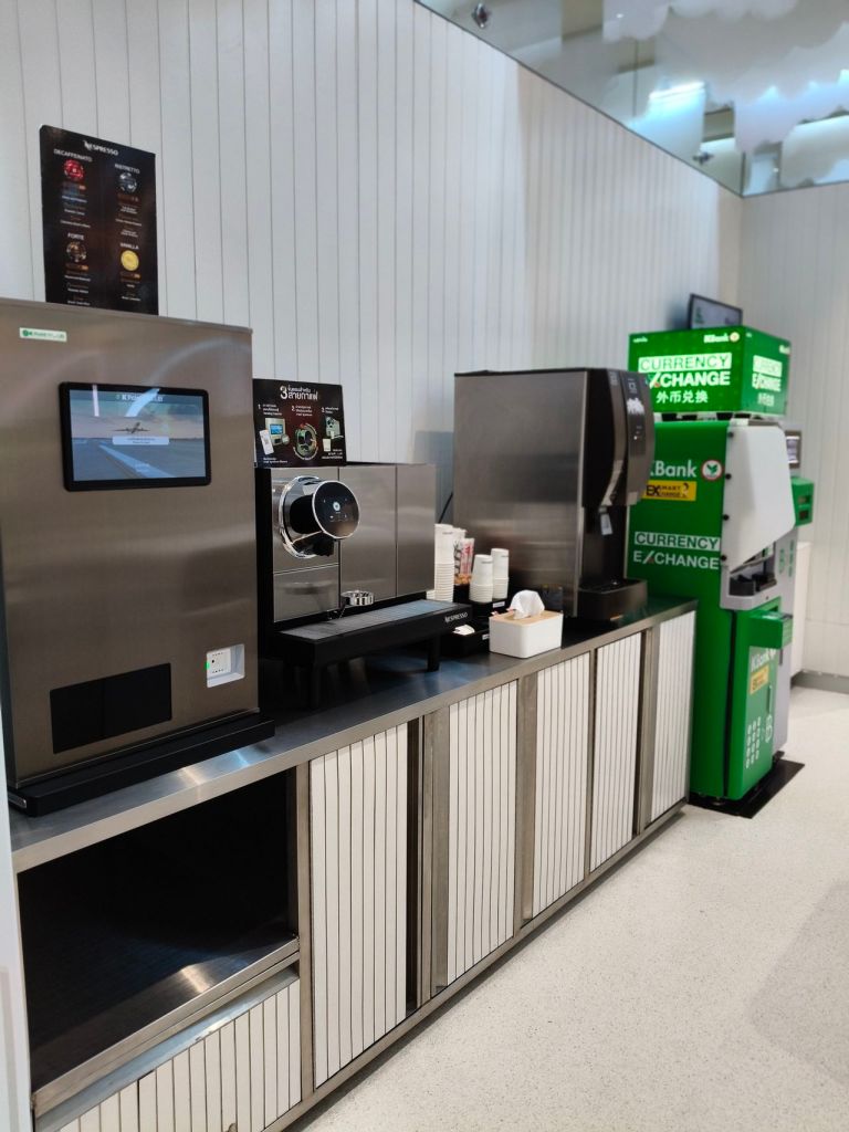 ทริป Osaka รอบนี้ เราเลือกนั่งรอเวลาขึ้นเครื่องท่าอากาศยานสุวรรณภูมิ ใน K Point KLUB ของธนาคารกสิกรไทย โดยใช้สิทธิแลกเงินเยน 5,000 บาท ถือว่าโอเคเลย ที่นั่งดูดี มีให้เลือกหลากหลายแบบ เลือกเครื่องดื่ม/ขนม/ของว่างจากตู้กดได้ 2 อย่าง