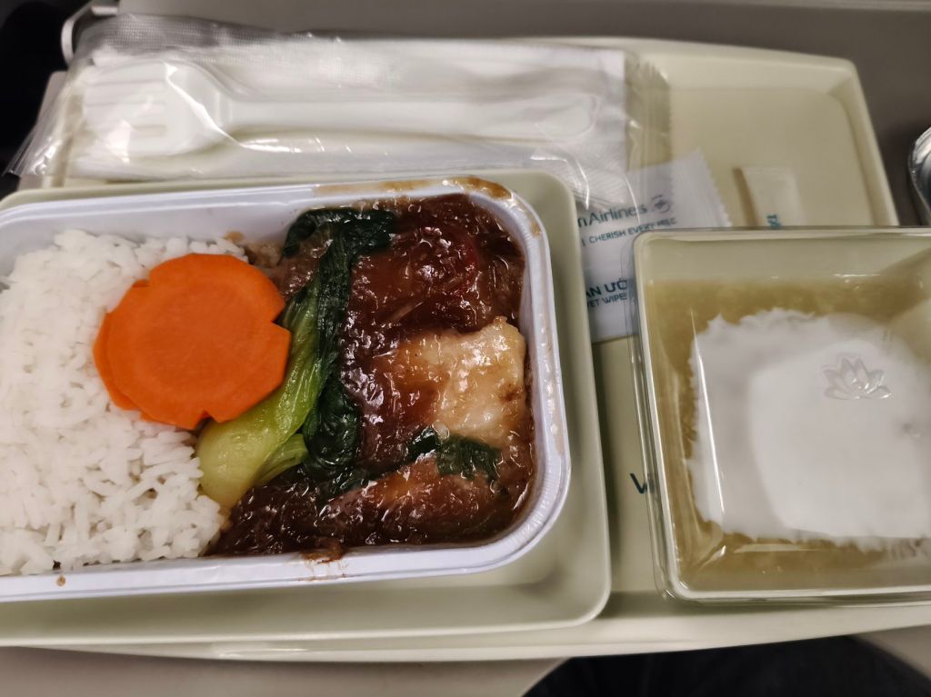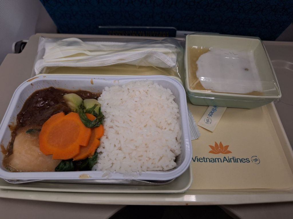 เราเลือกนั่ง Vietnam Airline ซึ่งต้องไปต่อเครื่องที่ฮานอย แบบไม่ต้องรับ/โหลดกระเป๋าใหม่ สะดวกดี … ลงเครื่องก็เดินตามป้าย Transfer ผ่านจุดตรวจ ตม. สำหรับ Transfer ก็ใช้เวลาไม่นาน ออกมาก็สแกนกระเป๋า แล้วเจอเกตทันที พื้นที่รอไม่ได้กว้างใหญ่มาก หาที่นั่งพักผ่อน เดินไปซื้อเครื่องดื่มของว่างมาทานเล่น รอเวลาขึ้นเครื่อง เครื่องออกตามเวลาไม่เสียเวลา ใกล้ถึงโอซาก้า ก็มีบริการอาหารบนเครื่อง รสชาติผ่าน