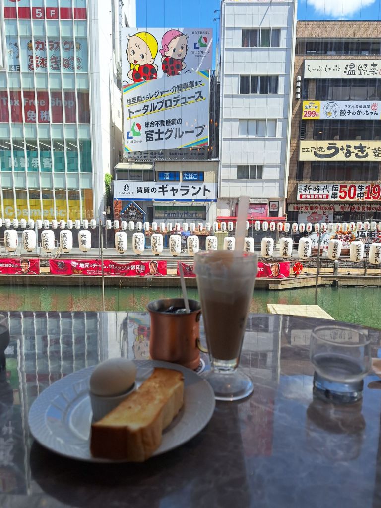 ถึงสนามบินโอซาก้าเป็นช่วงเช้า ใช้เวลาผ่าน ตม. รับกระเป๋าไม่นานก็ออกมาหาอะไรทานอีกนิดหน่อย ก็เดินไปขึ้นรถบัสสนามบินเพื่อไป Doton Plaza