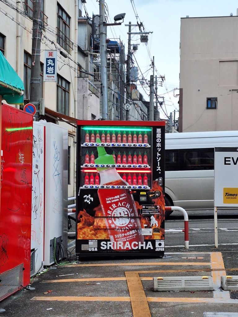 หาอะไรทานรองท้องก่อนกลับที่พัก ระหว่างทางกลับที่พักเจอตู้ขายซอสพริกศรีราชา จัดไป