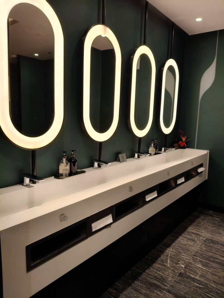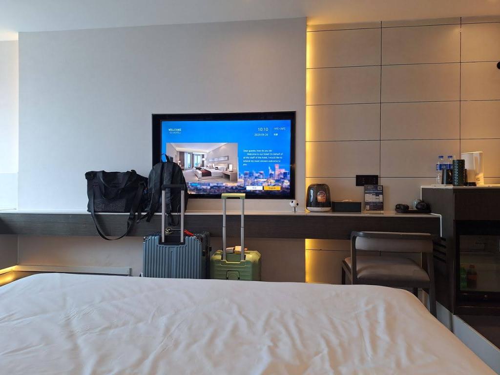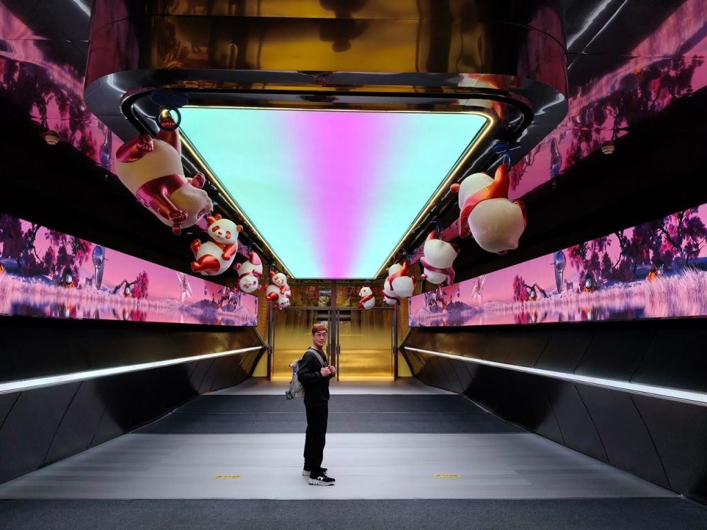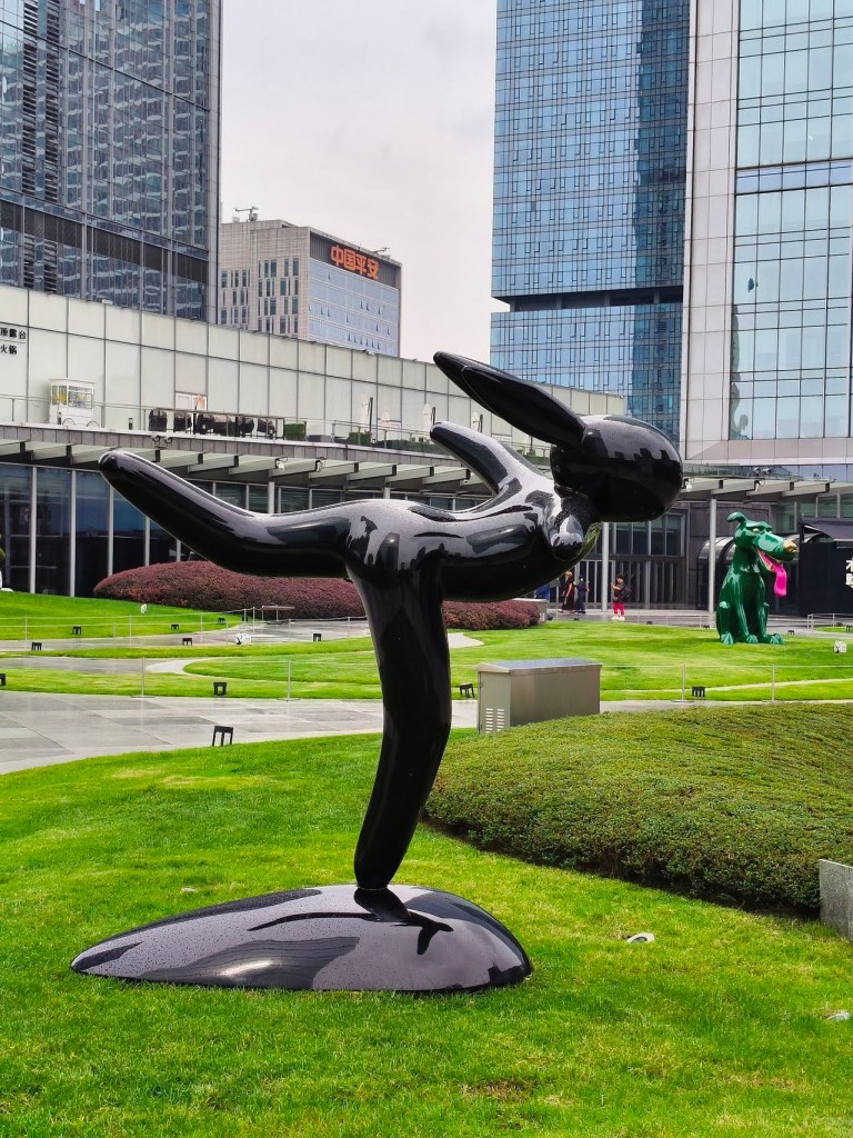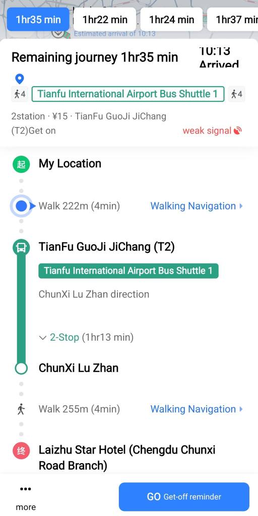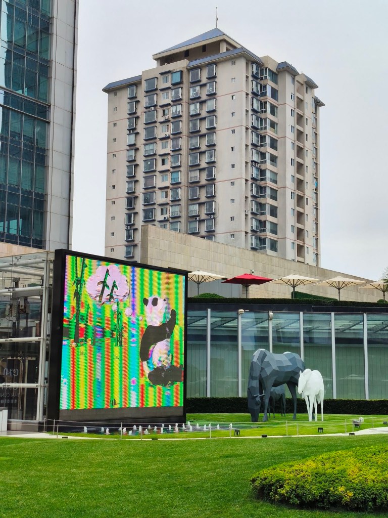 ท่าอากาศยานที่ใหม่เลยละ พื้นที่กว้าง ฟังก์ชันครบ ชอบห้องน้ำมีที่รองน้ำยาล้างมือรูปหมีแพนด้า พร้อมป้ายดิจิทัลแสดงข้อมูลการใช้ห้องน้ำที่ชัดเจน ห้องน้ำสะดวก … เราใช้เวลากับท่าอากาศยานนี้พอสมควร ตะลุยเก็บภาพจุดต่างๆ มุมน่ารัก และจัดมื้อเช้าเบาๆ ที่ Starbucks ก่อนไปที่ท่ารถบัส เดินนั่งรถบัสสนามบินไปที่พัก … ซื้อตั๋วขึ้นรถบัสกับพนักงานโดยจ่ายผ่าน Alipay … ใช้เวลาประมาณชั่วโมงก็ถึงป้ายสุดท้าย ซึ่งอยู่ตรงข้ามตึก IFS ที่มีรูปหมีแพนด้าปีนตึก