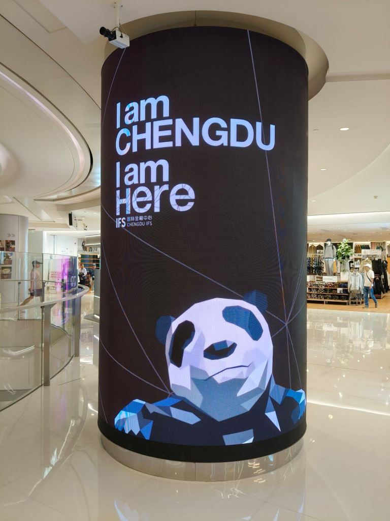 ถนน Chunxi เฉิงตู … น่าเป็นหนึ่งถนนที่มีห้างร้านต่างๆ เปรียบเสมือนสยามก็ว่าได้ … หลังจากเช็คอิน เก็บกระเป๋า จัดของ พักผ่อนสักงีบ ก็ลงมาเดินเล่น เก็บภาพ หาของกินชิวๆ .. ไม่พลาดขึ้นไปชม Panda บนตึก IFS