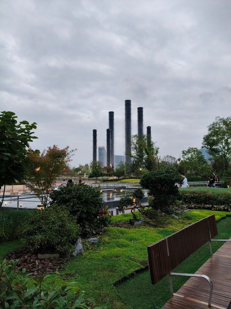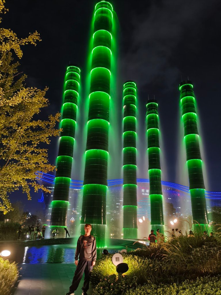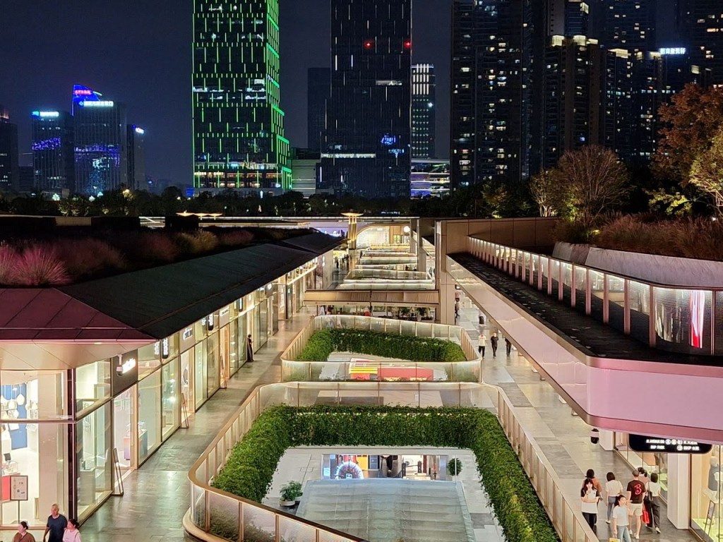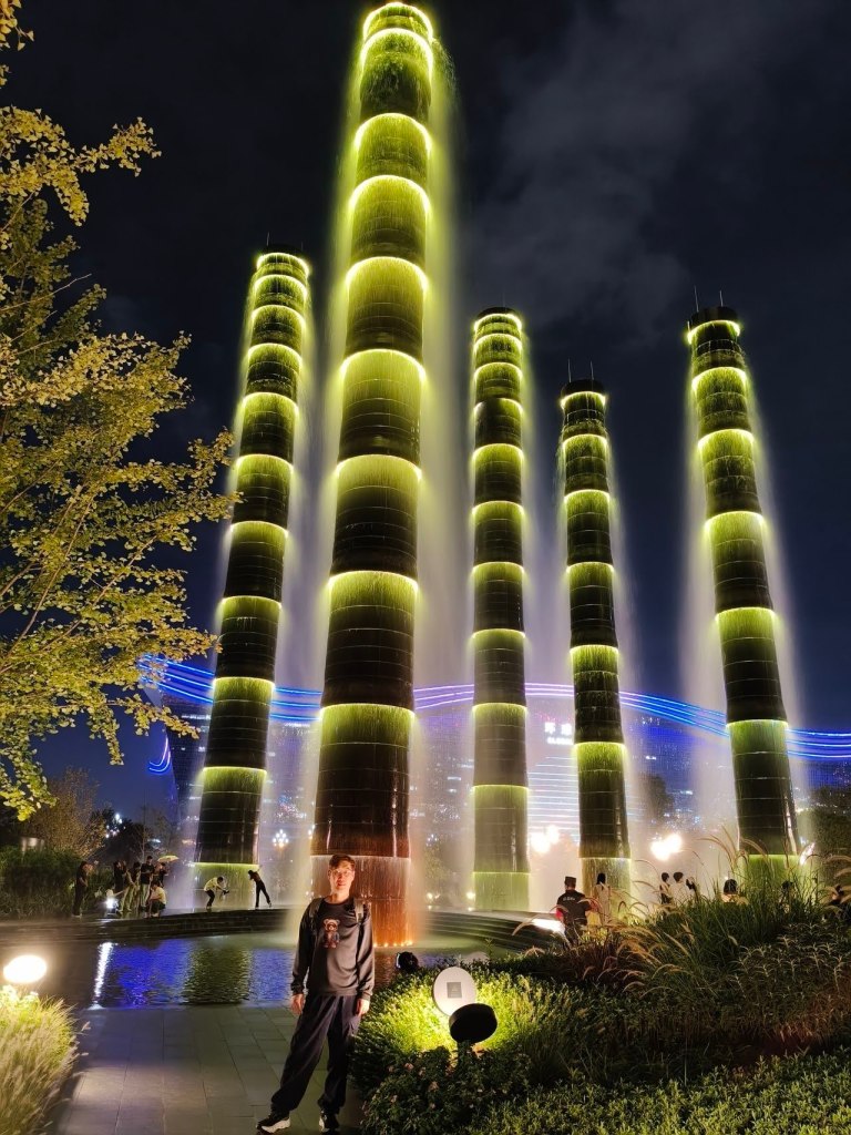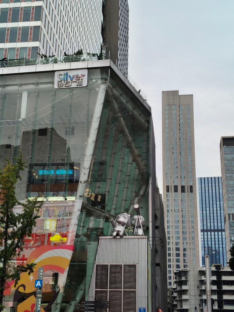 ช่วงเย็นไป Shopping Mall ที่ประทับใจมากที่เฉิงตู … SKP … ที่นี่เราจะไม่พบอาคารสูงเหมือน Shopping Mall อื่นๆ … แต่จะพบกับสวนสาธารณะสีเขียวขนาดใหญ่ที่ออกแบบอย่างสวยงามอยู่ด้านบน ร้านค้าต่างๆ อยู่ชั้นใต้ดินลงไปจัดเป็นศูนย์การค้าแบบยุบตัวที่ใหญ่ที่สุดในเอเชีย ที่นี่มีส่วนที่สูงโดดเด่น คือ เสาน้ำพุไม้ไผ่” ที่เปิดไฟสวยงามช่วงค่ำ