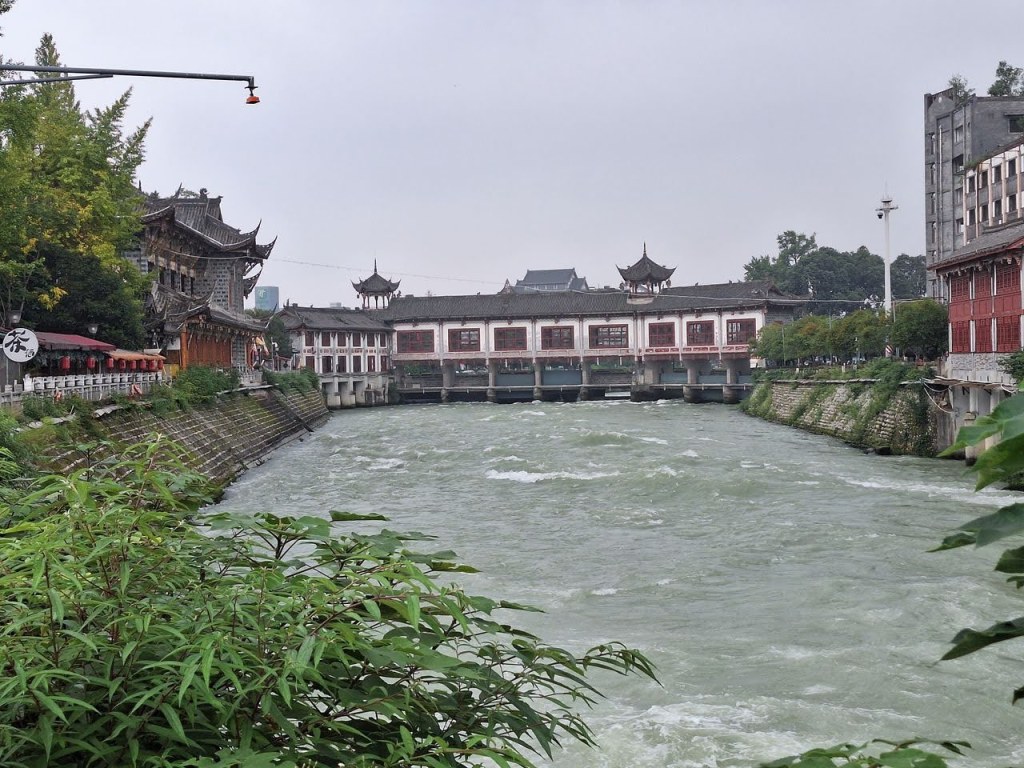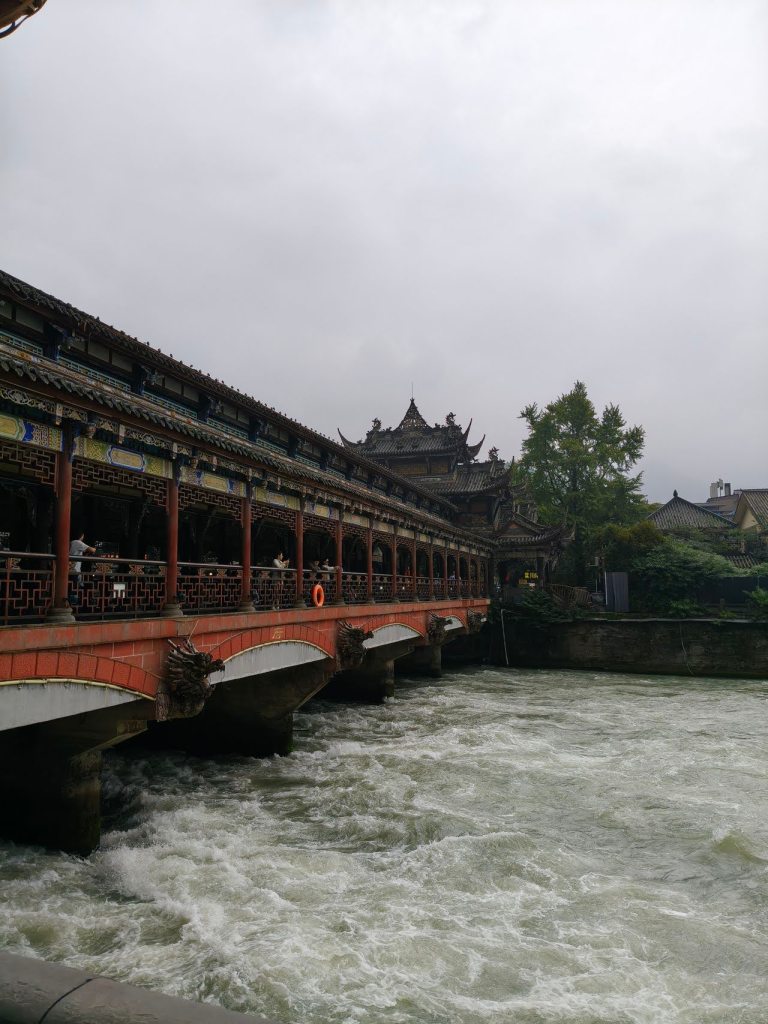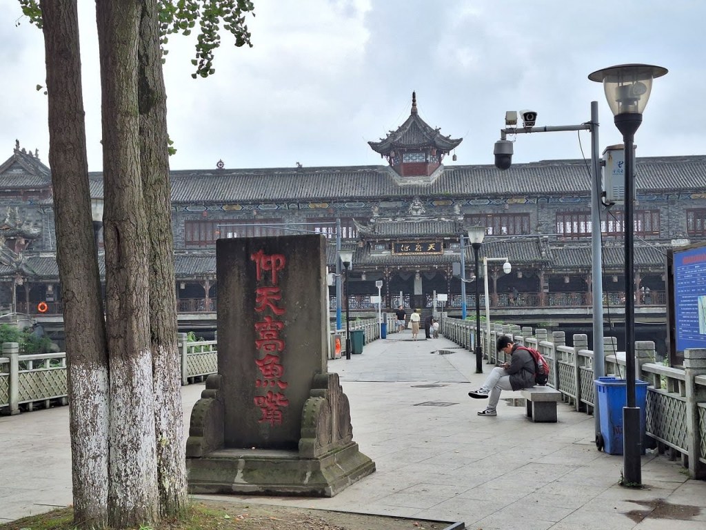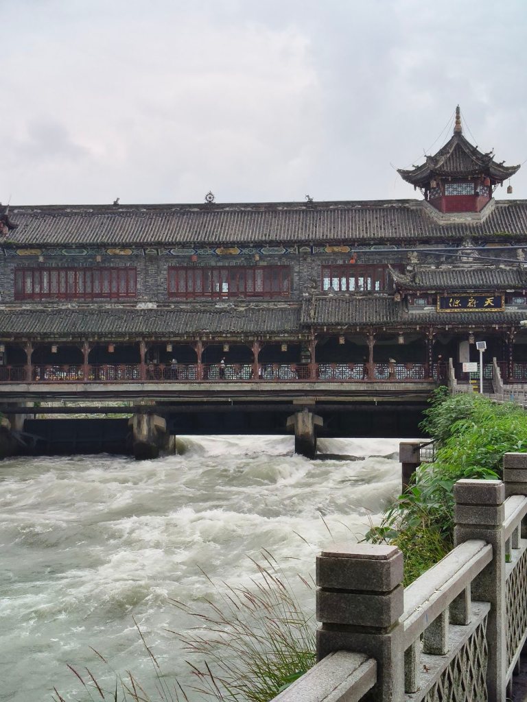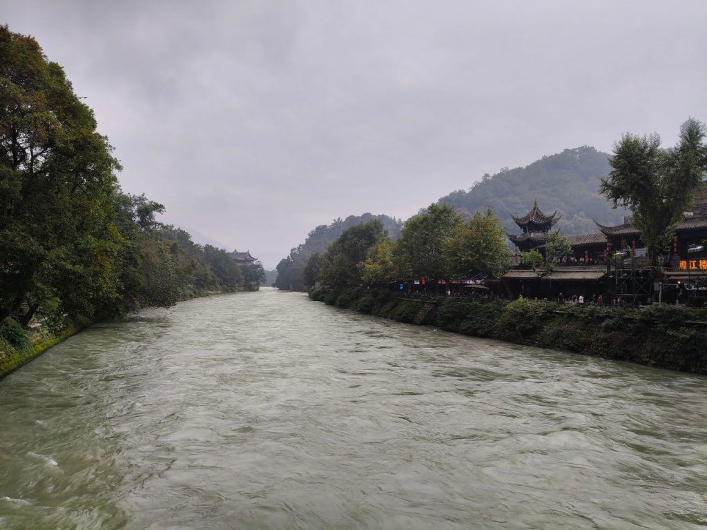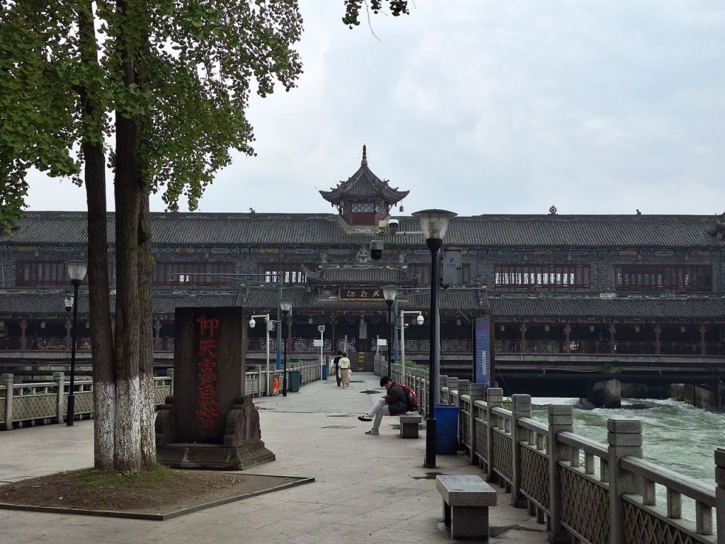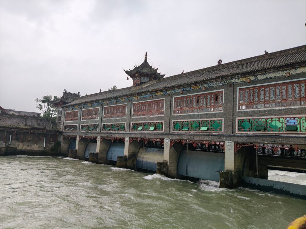 เดินไปเรื่อยๆ ก็จะพบว่าประตูกั้นน้ำของตูเจียงเยี่ยน Dujiangyan (都江堰) ซึ่งว่ากันว่าเป็นสถานที่ที่น่าประทับใจมากๆ ทั้งในแง่ประวัติศาสตร์และความอัจฉริยะด้านวิศวกรรมการจัดการน้ำ ระบบชลประทานโบราณอายุ 2,200 กว่าปี ที่ยังใช้งานได้จริงจนถึงทุกวันนี้ และได้รับการรับรองให้เป็น มรดกโลกของ UNESCO ที่สะท้อนถึงภูมิปัญญาอันล้ำเลิศในการควบคุมน้ำจากแม่น้ำหมินเจียง ทั้งป้องกันน้ำท่วมและช่วยการเกษตร
