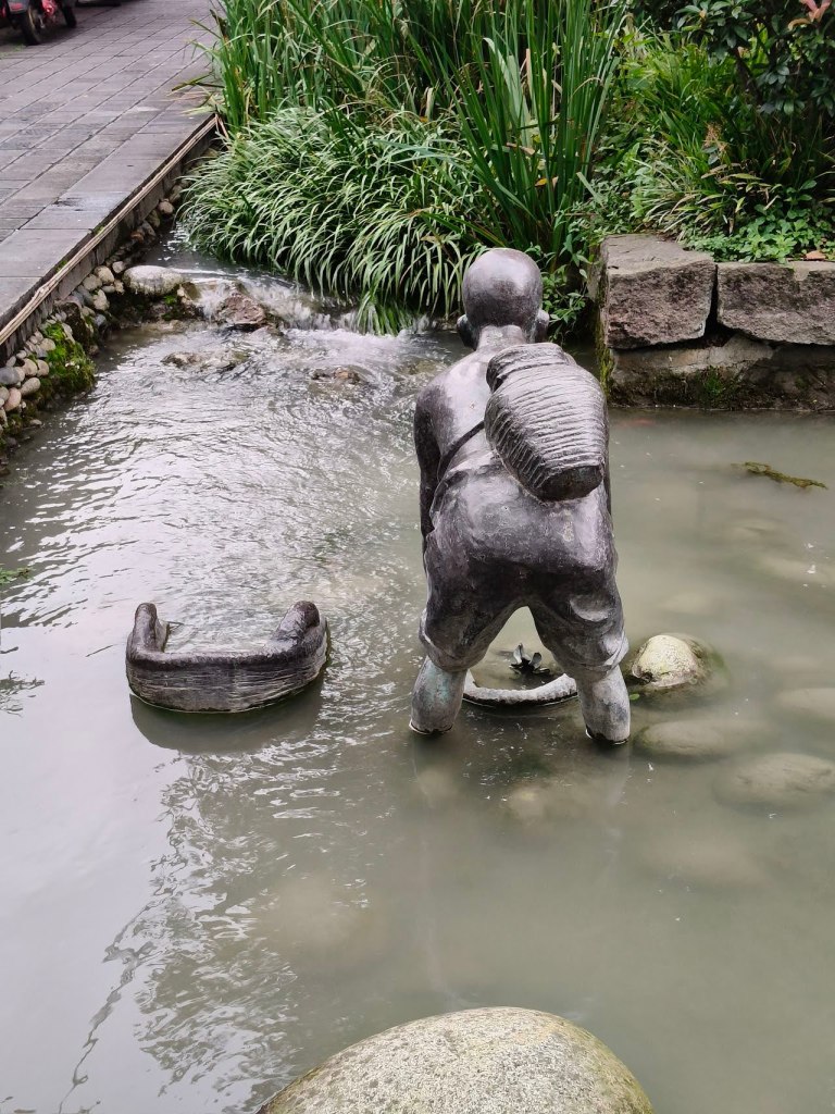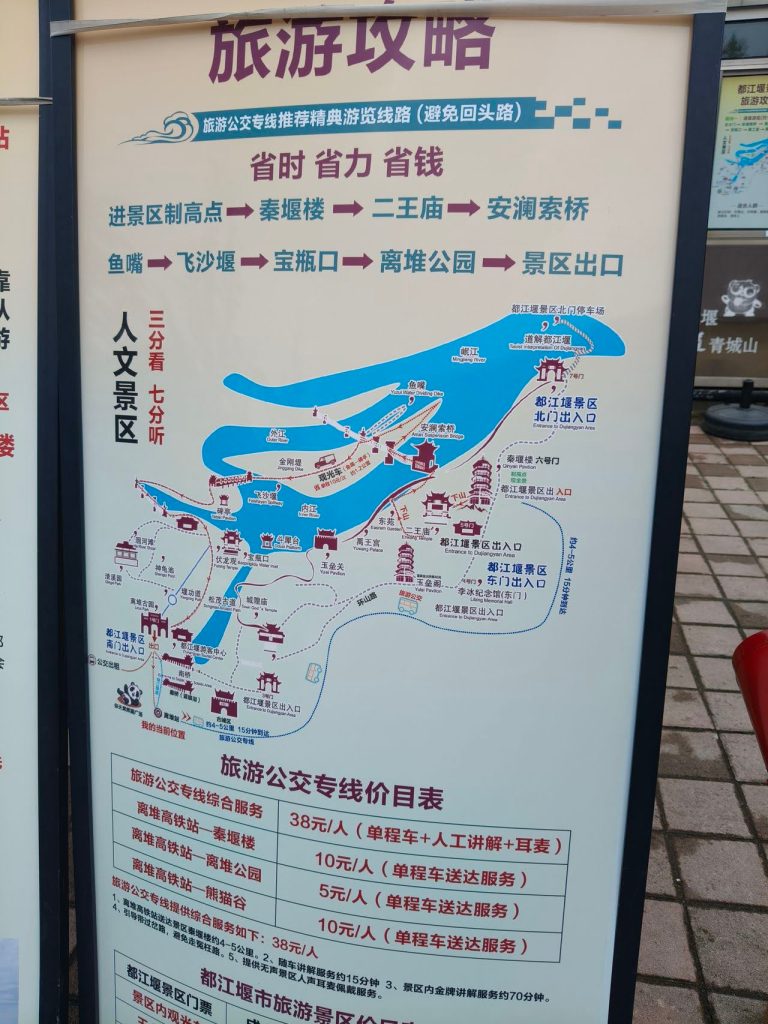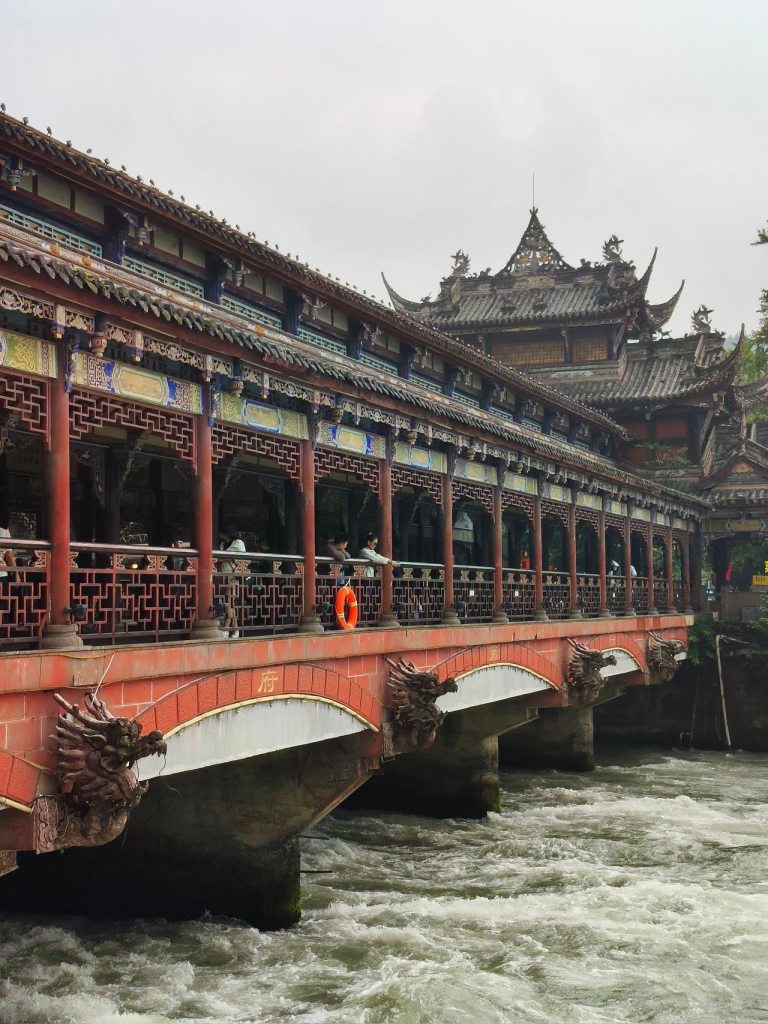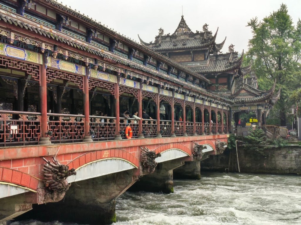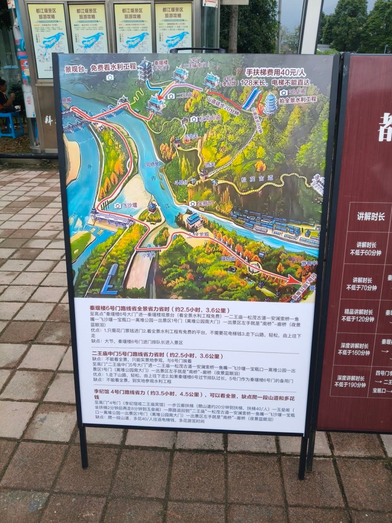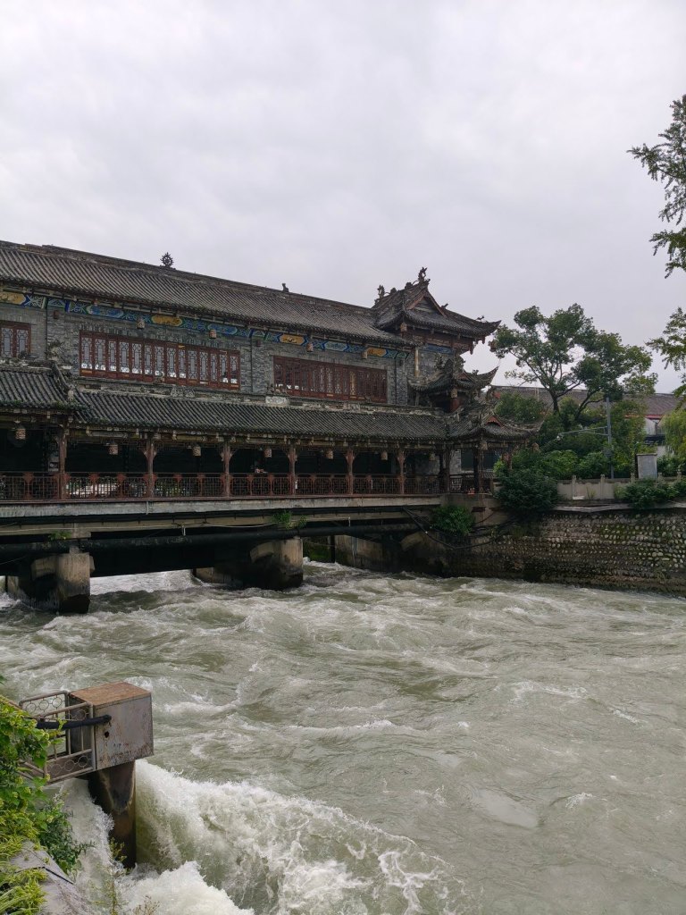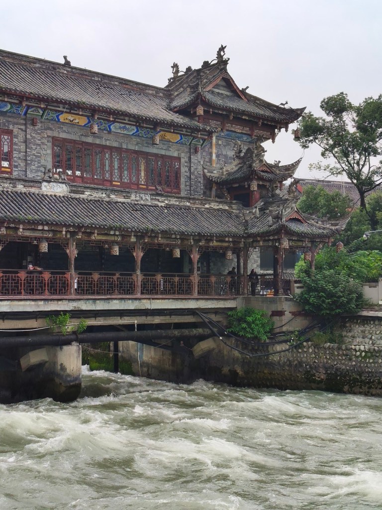 เดินไปเรื่อยๆ ก็จะพบว่าประตูกั้นน้ำของตูเจียงเยี่ยน Dujiangyan (都江堰) ซึ่งว่ากันว่าเป็นสถานที่ที่น่าประทับใจมากๆ ทั้งในแง่ประวัติศาสตร์และความอัจฉริยะด้านวิศวกรรมการจัดการน้ำ ระบบชลประทานโบราณอายุ 2,200 กว่าปี ที่ยังใช้งานได้จริงจนถึงทุกวันนี้ และได้รับการรับรองให้เป็น มรดกโลกของ UNESCO ที่สะท้อนถึงภูมิปัญญาอันล้ำเลิศในการควบคุมน้ำจากแม่น้ำหมินเจียง ทั้งป้องกันน้ำท่วมและช่วยการเกษตร