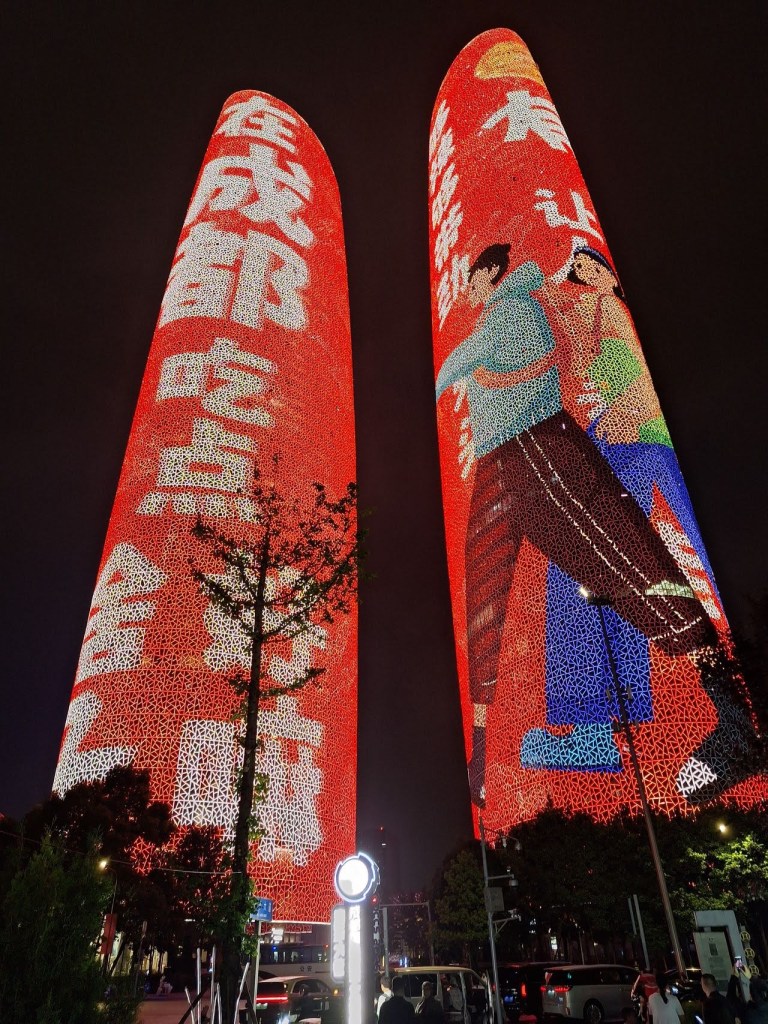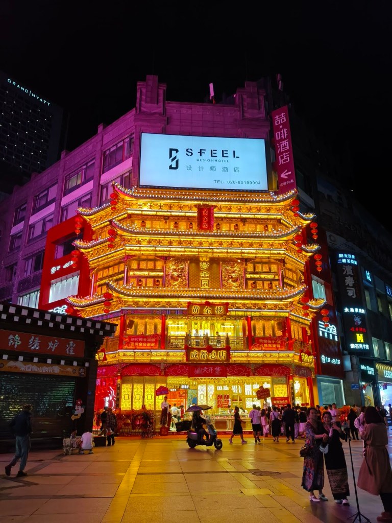 ถึงตัวเมืองก็นั่งรถไฟใต้ดินต่อไปชมสีสันของ Twin Towers Chengdu หรือชื่อทางการว่า Tianfu International Finance Center ที่ไม่ได้มีแค่ความสูงและการออกแบบที่สื่อถึงตะเกียบคู่ แต่ยังเป็นแลนด์มาร์คสุดอลังการใจกลางเฉิงตูที่ต้องมาดูไฟและการแสดงแสงสีสวยๆ วนไปเรื่อยๆ ไฟจะเริ่มเปิดประมาณ 19.00 น.
