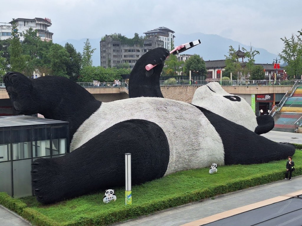 มาเฉิงตู ก็ไม่ควรพลาดกับ Panda selfie 仰天窝广场 โดยเรานั่งรถไฟไปสถานี Xipu แล้วซื้อตั๋วรถไฟไป Liduigongyuan หรือ Lidui Park รถไฟขบวนนี้วิ่งต้นทางปลายทาง สะดวกอยู่ครับ สามารถซื้อตั๋วผ่าน Trip หรือซื้อกับเจ้าหน้าที่ก็ได้ ต้องแสดง Passport แนะนำว่าควรซื้อไปกลับนะครับ เพราะขากลับคนจะเยอะมาก ไม่งั้นต้องยืน แต่ก็โอเคเพราะใช้เวลาเดินทางไม่เกิน 30 นาที ชิวๆๆๆ ถึงสถานี Liduigongyuan ใช้ทางออก D ออกจากสถานีก็เห็น Panda นอนโชว์ Selfie ชัดครับ