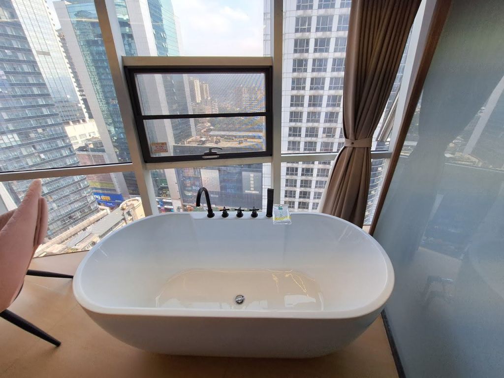เราเลือกพักโรงแรม FF Hotel (Chongqing Jiefangbei Pedestrian Street Store) เป็นโรงแรมในตึก Xinhua ชั้น 17 … ห้องพักกว้าง วิวดีมาก ชอบสุดอ่างแช่ที่นอนแช่พร้อมชมวิวยามค่ำได้ชิวๆๆๆ (จริงๆ ได้ทุกช่วงที่ต้องการ 5555) บริการดีมาก … พื้นที่รอบมีความพร้อมทั้งห้าง และร้านค้าต่างๆ รวมถึง Chongquing Street Food มันคือดีเลิศ จะมื้อเช้า สาย เที่ยง บ่าย ค่ำ และดึก จัดเต็ม .. เดินทางไปเที่ยวจุดต่างๆ สะดวก จะเดิน จะนั่งรถไฟใต้ดิน นั่งรถเมล หรือแท็กซี่ตามต้องการ
