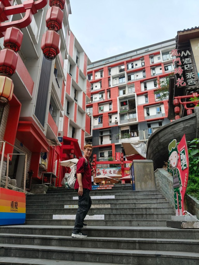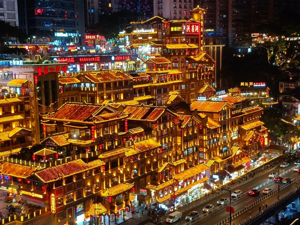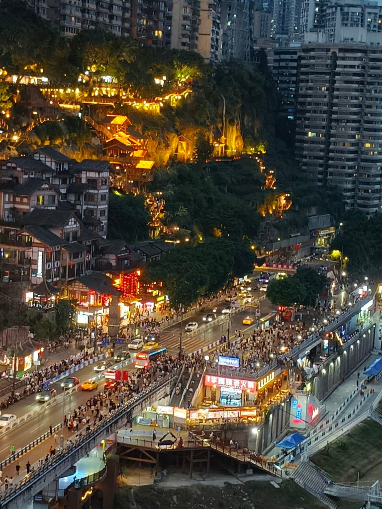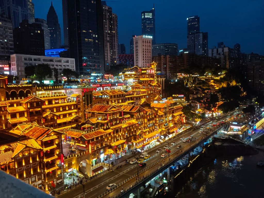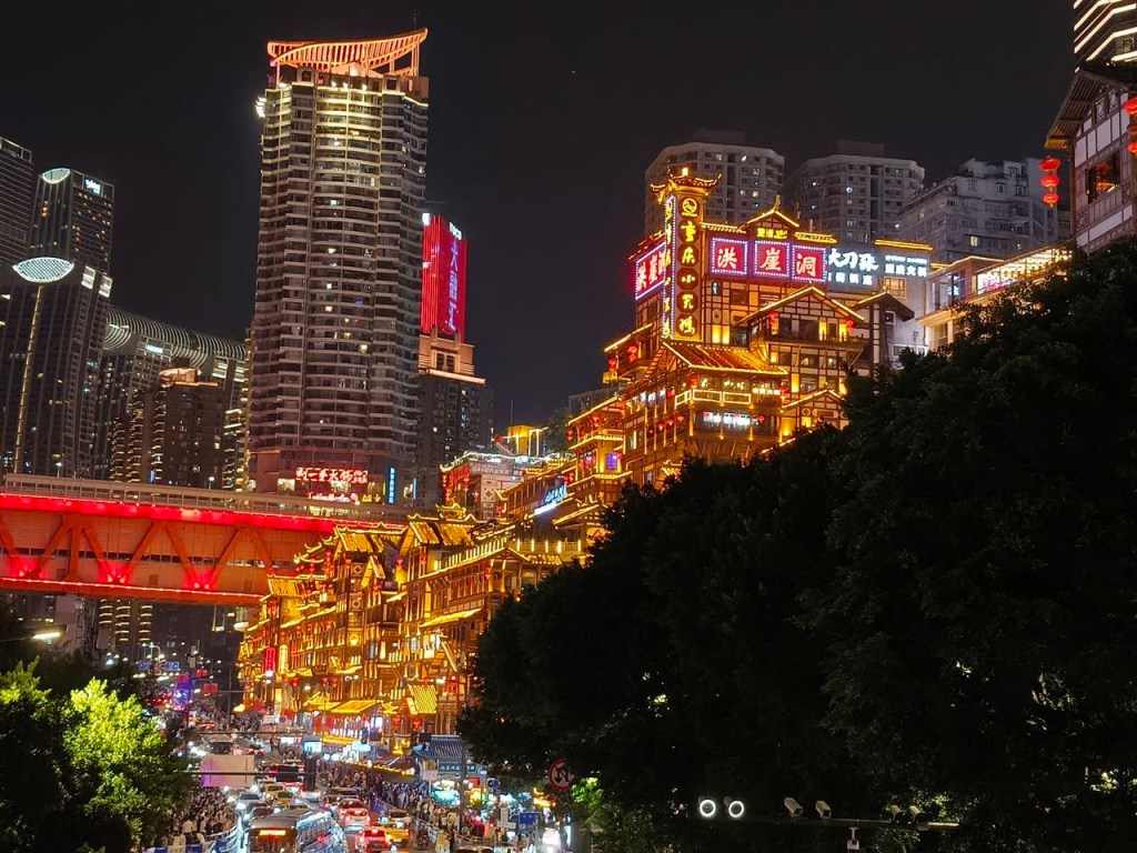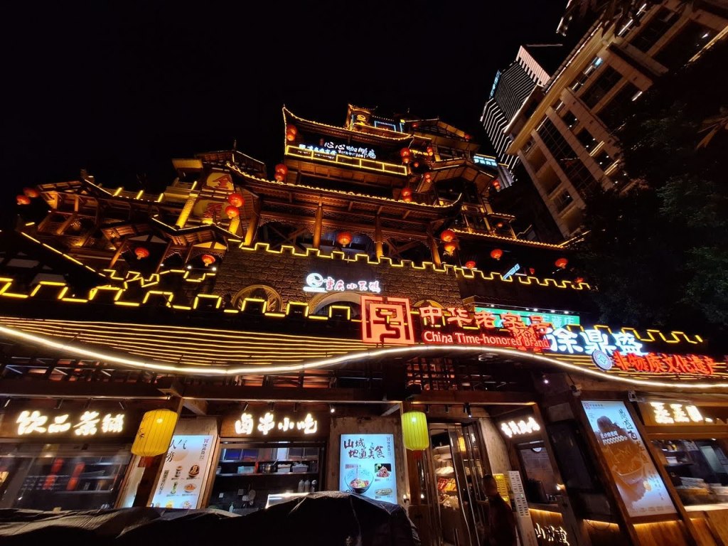 อีกเป้าหมายของวันนี้ก็คือ หงหยาต้ง (Hongyadong) ที่สวยตะลึงมาก! โดยเฉพาะตอนที่เปิดไฟยามค่ำคืน คือภาพที่เห็นตรงหน้ามันเกินคำว่า ‘แลนด์มาร์ก’ ไปเลยจริงๆ เหมือนหลุดเข้าไปในโลกแอนิเมชัน ตึกไม้ไต่เขาริมแม่น้ำเจียหลิง 11 ชั้น สว่างไสวสุดๆ มุมถ่ายรูปคือเยอะมาก แนะนำให้มาช่วงเย็นๆ แล้วเดินชมจนถึงตอนเปิดไฟนะคะ คุ้มค่าแก่การมาเยือนฉงชิ่งสุดๆ ที่นี่ไม่ได้มีแค่ตึกสวยๆ แต่ยังมีร้านอาหาร สตรีทฟู้ด ของที่ระลึก และคาเฟ่ให้เดินชมเพลินๆ มากมาย บรรยากาศคึกคักสุดๆ แถมยังเป็นแหล่งรวมวัยรุ่นจีนด้วยนะ แนะนำให้เดินลงจากด้านบนลงมาตามชั้นต่างๆ จะได้ไม่เมื่อยมาก เดินมาถึงชั้น 2 ก็เจอร้านอาหารบรรยากาศน่าทาน Xu Dingsheng Yuwei Sichuan Cuisine จัดไปกับปลาต้มผักกาดดองที่โดนใจมาก และอย่าลืมเก็บภาพแสงไฟทั้งฝั่ง Hongyadong และฝั่งตรงข้าม รวมทั้งสะพานกันนะครับ