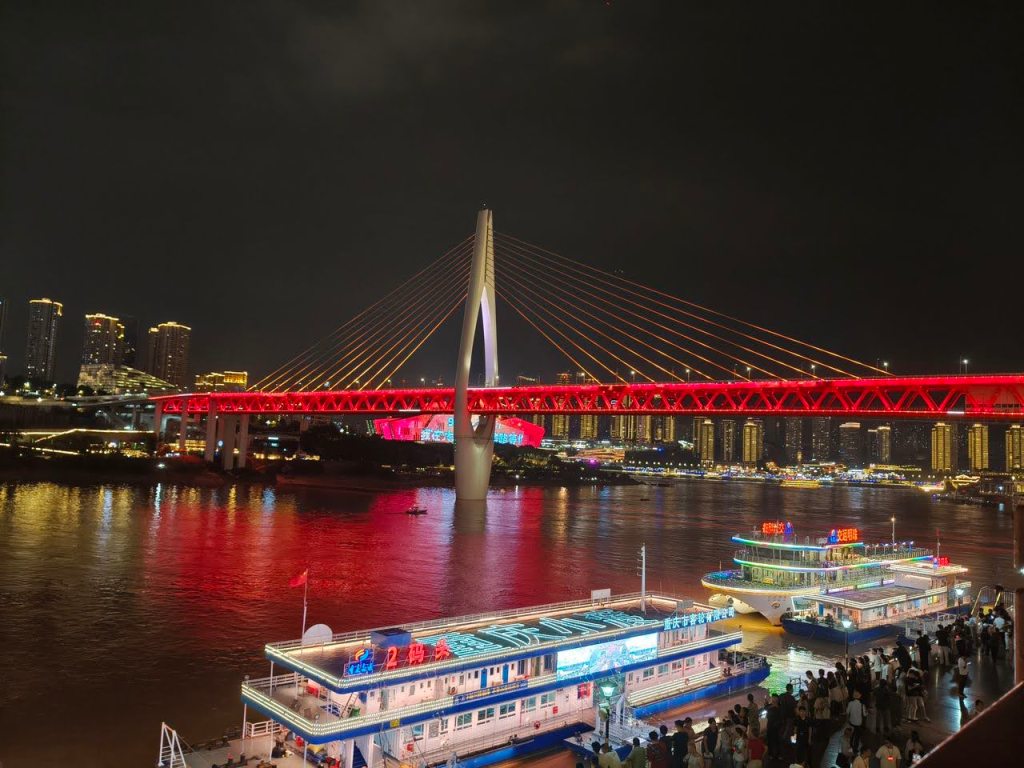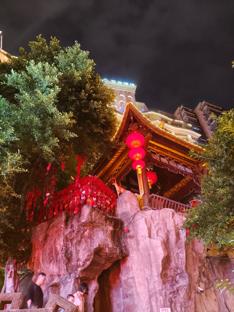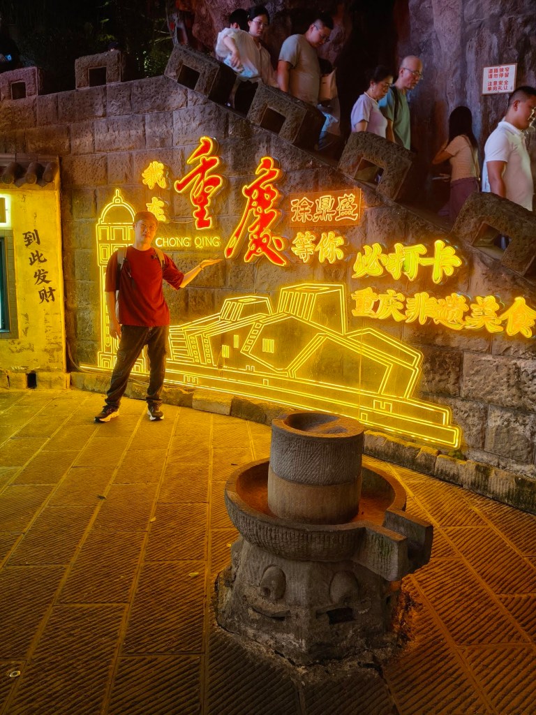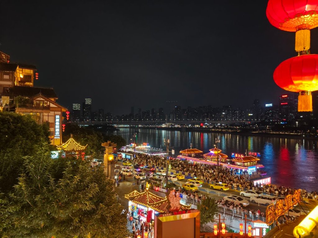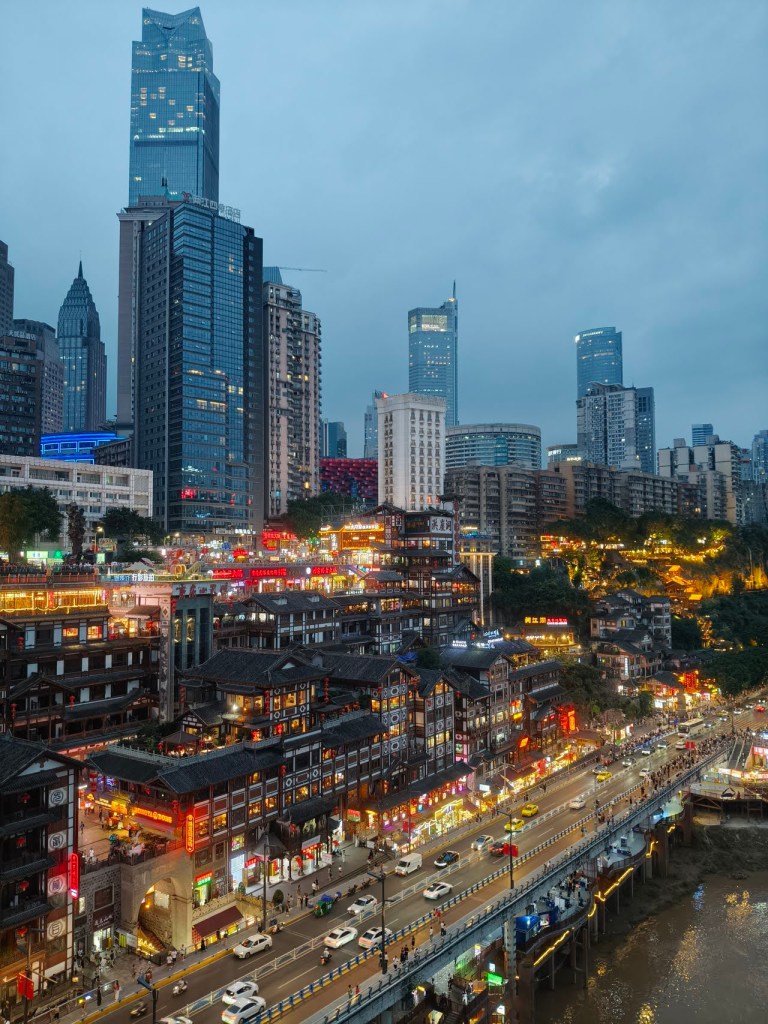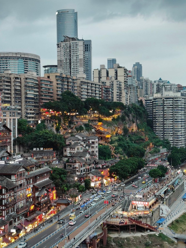 อีกเป้าหมายของวันนี้ก็คือ หงหยาต้ง (Hongyadong) ที่สวยตะลึงมาก! โดยเฉพาะตอนที่เปิดไฟยามค่ำคืน คือภาพที่เห็นตรงหน้ามันเกินคำว่า ‘แลนด์มาร์ก’ ไปเลยจริงๆ เหมือนหลุดเข้าไปในโลกแอนิเมชัน ตึกไม้ไต่เขาริมแม่น้ำเจียหลิง 11 ชั้น สว่างไสวสุดๆ มุมถ่ายรูปคือเยอะมาก แนะนำให้มาช่วงเย็นๆ แล้วเดินชมจนถึงตอนเปิดไฟนะคะ คุ้มค่าแก่การมาเยือนฉงชิ่งสุดๆ ที่นี่ไม่ได้มีแค่ตึกสวยๆ แต่ยังมีร้านอาหาร สตรีทฟู้ด ของที่ระลึก และคาเฟ่ให้เดินชมเพลินๆ มากมาย บรรยากาศคึกคักสุดๆ แถมยังเป็นแหล่งรวมวัยรุ่นจีนด้วยนะ แนะนำให้เดินลงจากด้านบนลงมาตามชั้นต่างๆ จะได้ไม่เมื่อยมาก เดินมาถึงชั้น 2 ก็เจอร้านอาหารบรรยากาศน่าทาน Xu Dingsheng Yuwei Sichuan Cuisine จัดไปกับปลาต้มผักกาดดองที่โดนใจมาก และอย่าลืมเก็บภาพแสงไฟทั้งฝั่ง Hongyadong และฝั่งตรงข้าม รวมทั้งสะพานกันนะครับ