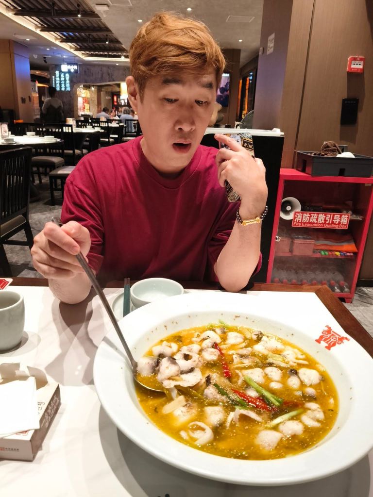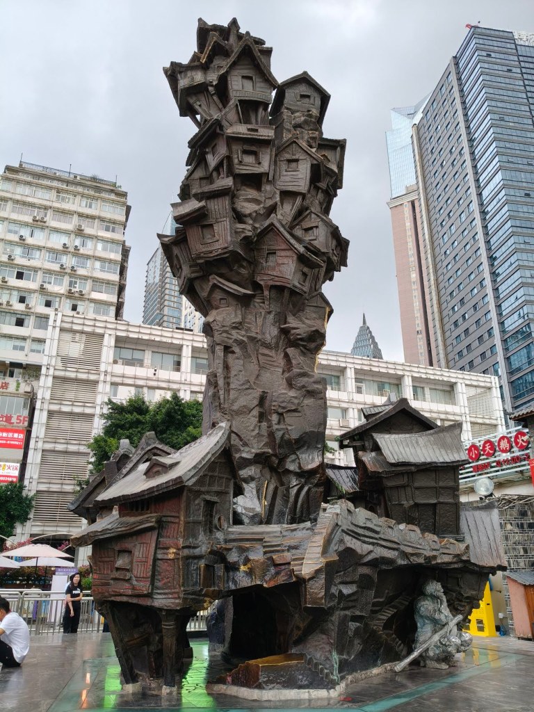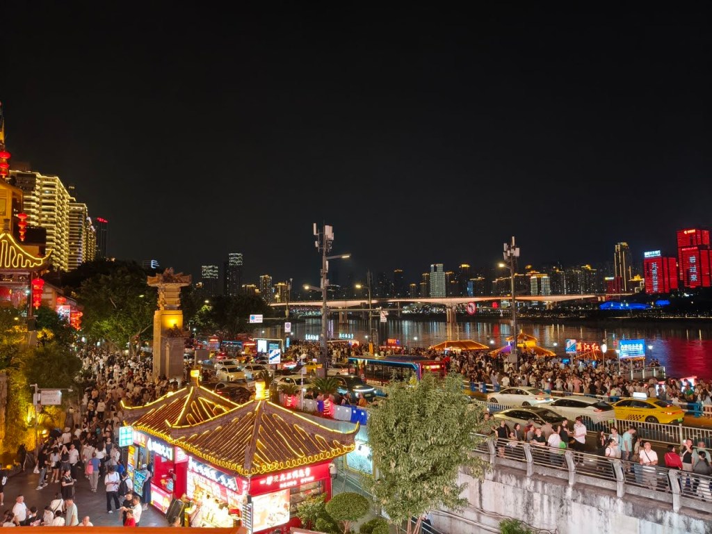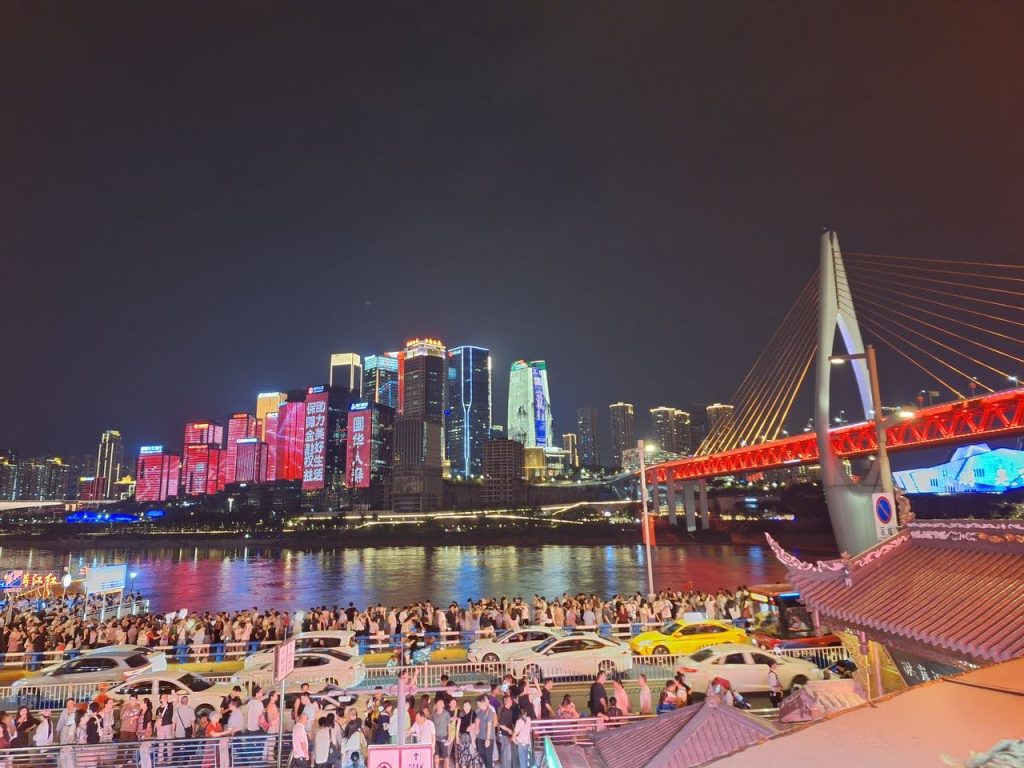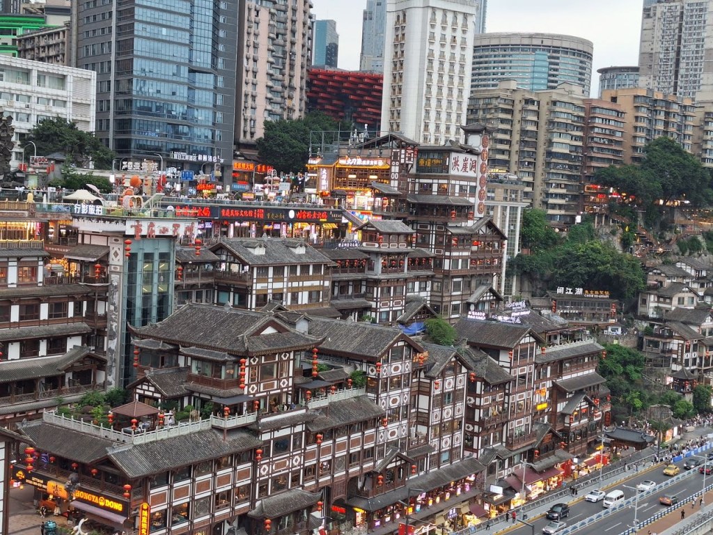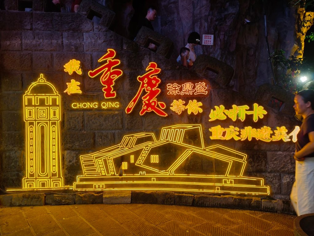 อีกเป้าหมายของวันนี้ก็คือ หงหยาต้ง (Hongyadong) ที่สวยตะลึงมาก! โดยเฉพาะตอนที่เปิดไฟยามค่ำคืน คือภาพที่เห็นตรงหน้ามันเกินคำว่า ‘แลนด์มาร์ก’ ไปเลยจริงๆ เหมือนหลุดเข้าไปในโลกแอนิเมชัน ตึกไม้ไต่เขาริมแม่น้ำเจียหลิง 11 ชั้น สว่างไสวสุดๆ มุมถ่ายรูปคือเยอะมาก แนะนำให้มาช่วงเย็นๆ แล้วเดินชมจนถึงตอนเปิดไฟนะคะ คุ้มค่าแก่การมาเยือนฉงชิ่งสุดๆ ที่นี่ไม่ได้มีแค่ตึกสวยๆ แต่ยังมีร้านอาหาร สตรีทฟู้ด ของที่ระลึก และคาเฟ่ให้เดินชมเพลินๆ มากมาย บรรยากาศคึกคักสุดๆ แถมยังเป็นแหล่งรวมวัยรุ่นจีนด้วยนะ แนะนำให้เดินลงจากด้านบนลงมาตามชั้นต่างๆ จะได้ไม่เมื่อยมาก เดินมาถึงชั้น 2 ก็เจอร้านอาหารบรรยากาศน่าทาน Xu Dingsheng Yuwei Sichuan Cuisine จัดไปกับปลาต้มผักกาดดองที่โดนใจมาก และอย่าลืมเก็บภาพแสงไฟทั้งฝั่ง Hongyadong และฝั่งตรงข้าม รวมทั้งสะพานกันนะครับ