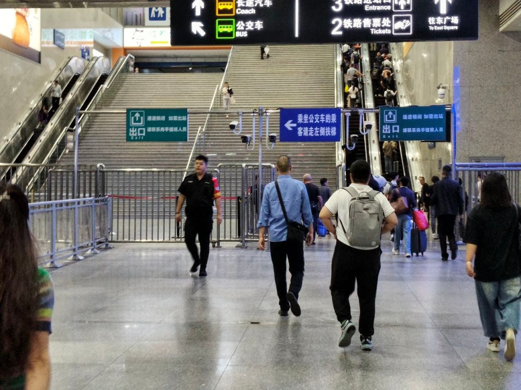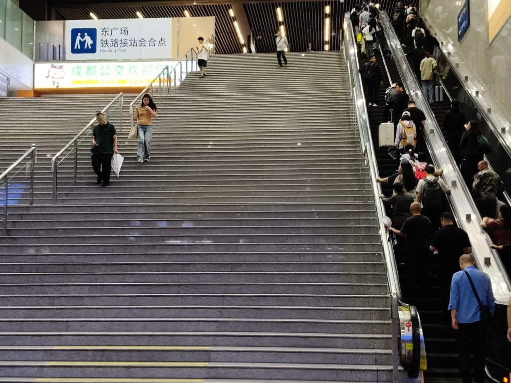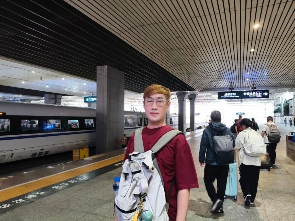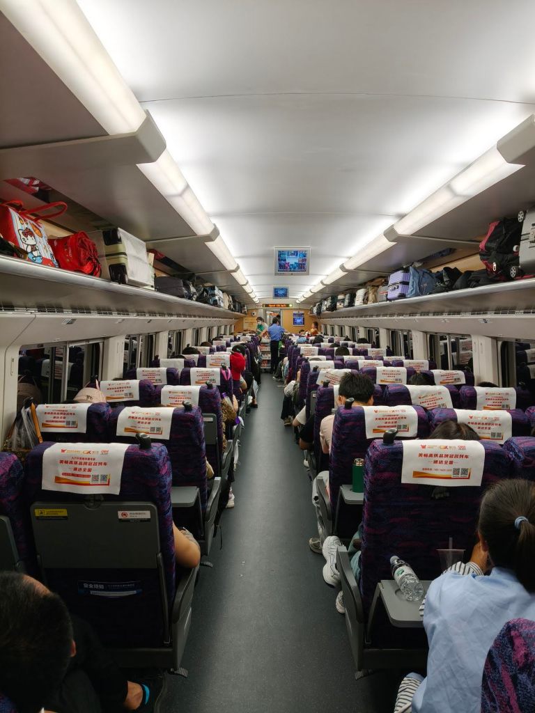เช้าวันที่ 28 ทานขนมที่ซื้อจากร้านดัง Holi land แล้วเช็คเอาท์โรงแรม แล้วนั่งรถไฟใต้ดินไปสถานีรถไฟเฉิงตูอีสต์ เป็นสถานีที่ใหญ่มากสถานีหนึ่ง เป็นช่วงที่คนจีนบางส่วนทยอยกลับบ้านต่างจังหวัด คนเลยหนาแน่น แต่ด้วยเรามาเช้า ยังพอไหว รถไฟวันนี้เสียเวลานิดหน่อย แต่ด้วยได้จองที่นั่ง จึงไม่ลำบากอะไร กระเป๋ายกวางที่วางด้านบน ใช้เวลาประมาณสองชั่วโมงก็ถึงฉงชิ่ง Chongqing north railway station