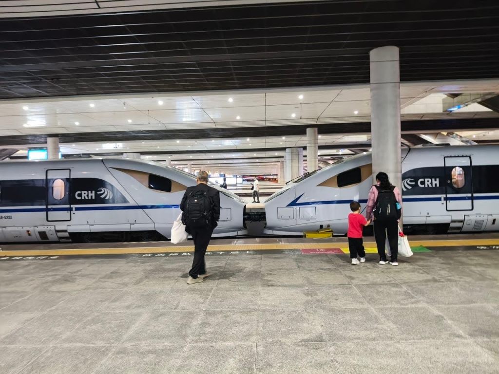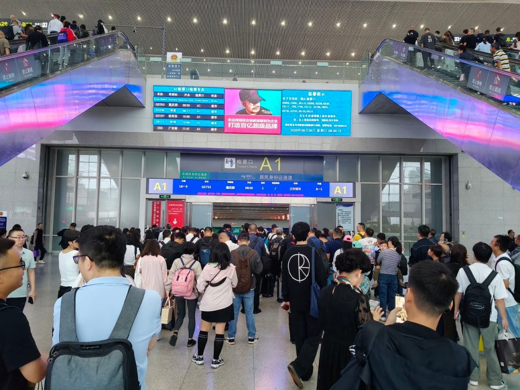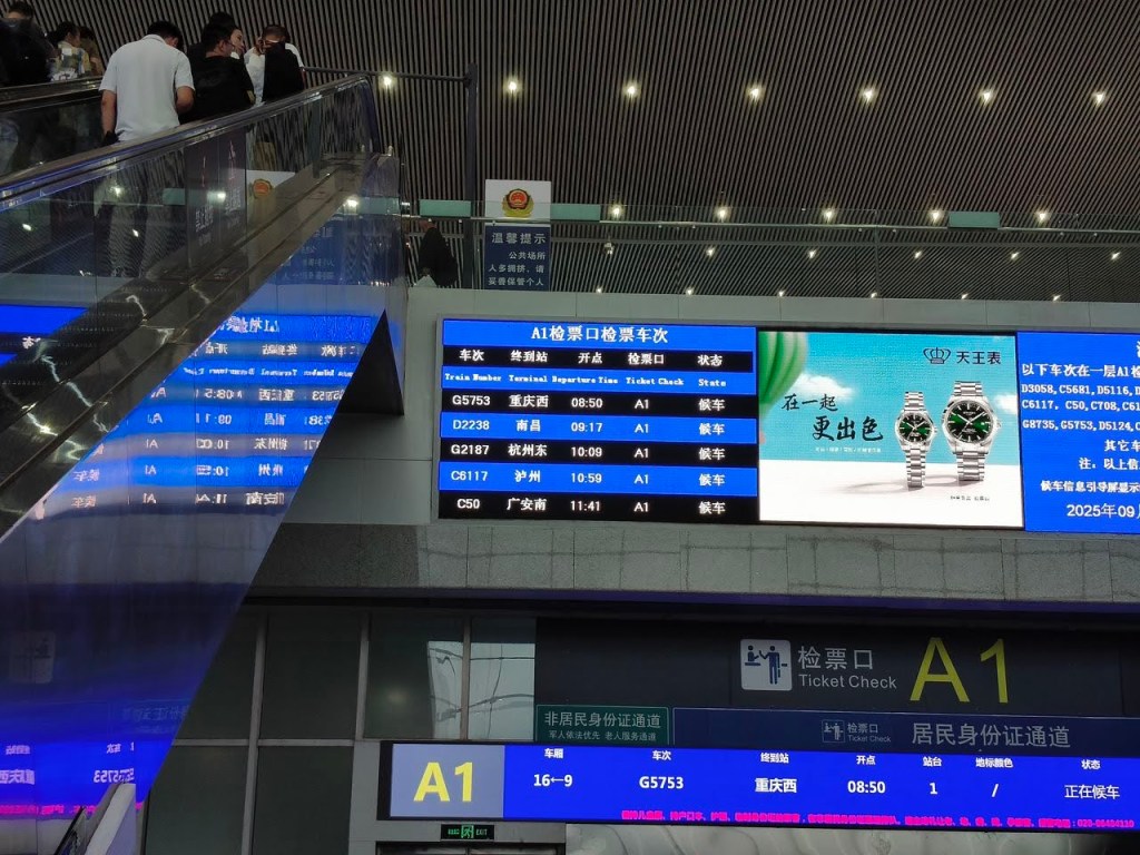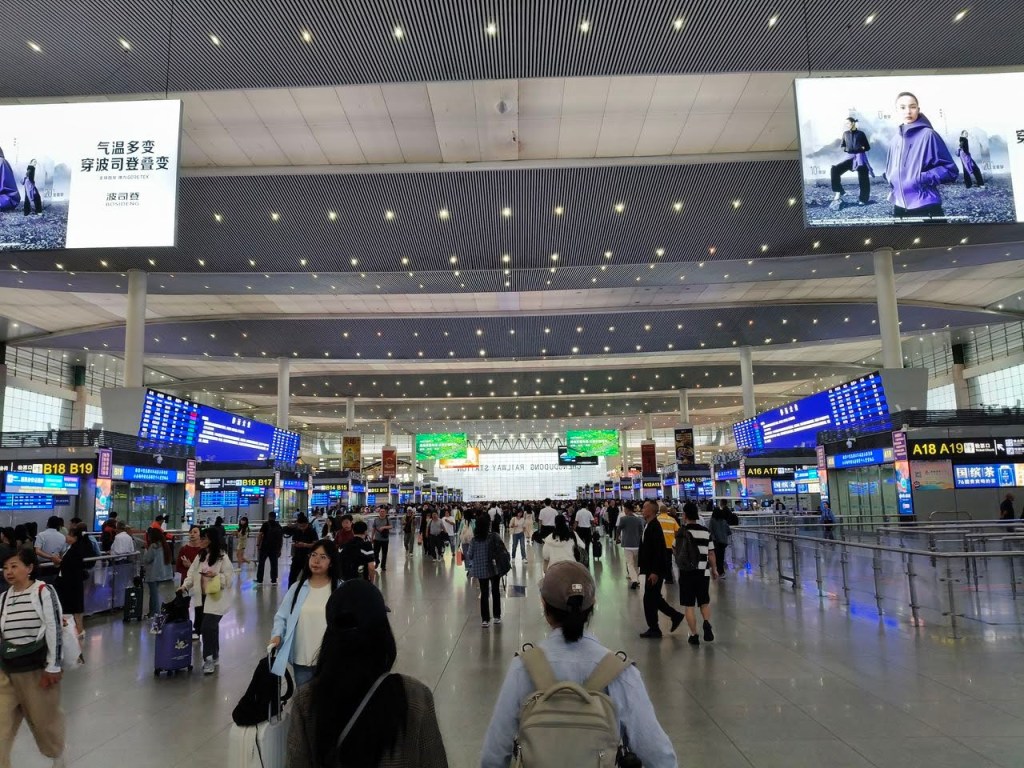 เช้าวันที่ 28 ทานขนมที่ซื้อจากร้านดัง Holi land แล้วเช็คเอาท์โรงแรม แล้วนั่งรถไฟใต้ดินไปสถานีรถไฟเฉิงตูอีสต์ เป็นสถานีที่ใหญ่มากสถานีหนึ่ง เป็นช่วงที่คนจีนบางส่วนทยอยกลับบ้านต่างจังหวัด คนเลยหนาแน่น แต่ด้วยเรามาเช้า ยังพอไหว รถไฟวันนี้เสียเวลานิดหน่อย แต่ด้วยได้จองที่นั่ง จึงไม่ลำบากอะไร กระเป๋ายกวางที่วางด้านบน ใช้เวลาประมาณสองชั่วโมงก็ถึงฉงชิ่ง Chongqing north railway station