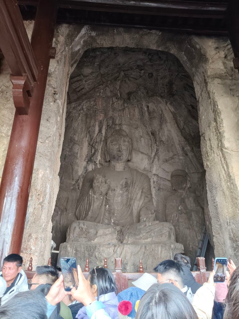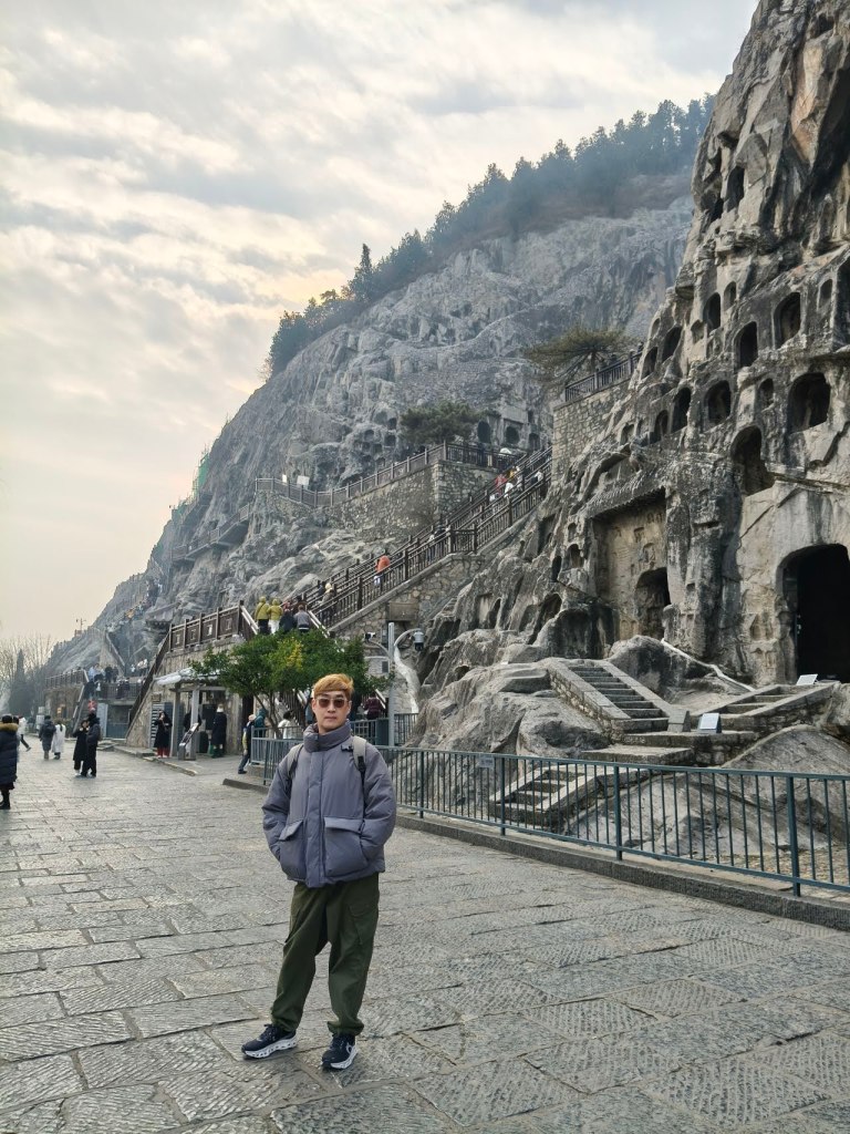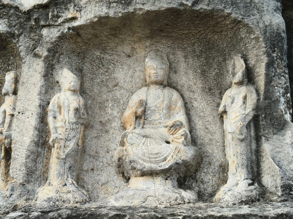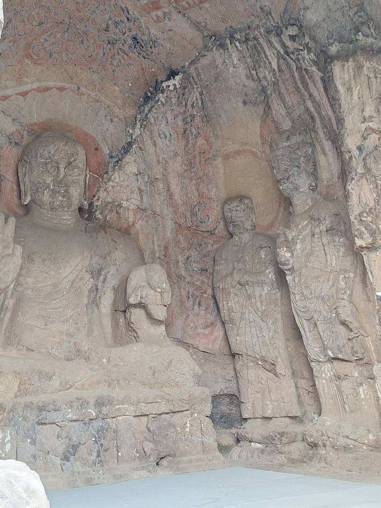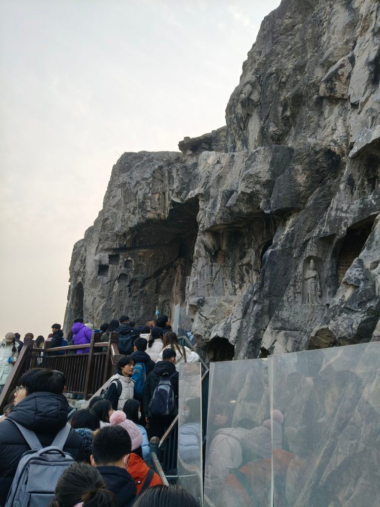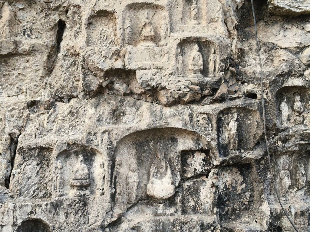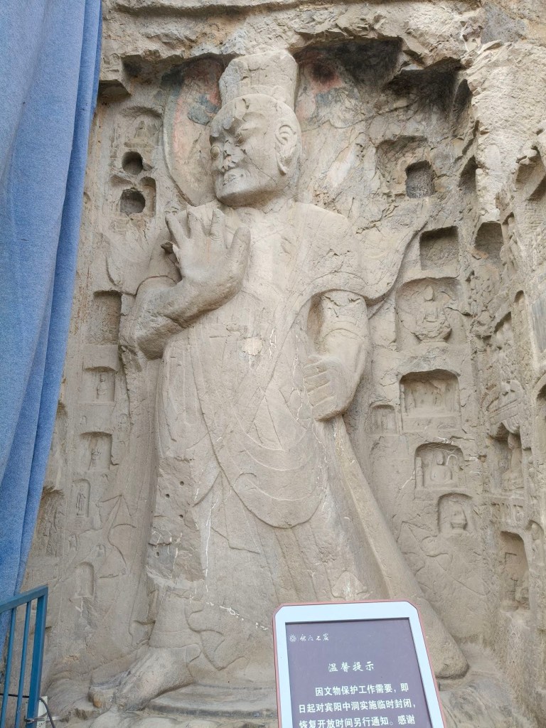 ที่นี่เราจะได้พบกับความยิ่งใหญ่อลังของงานแกะสลักหน้าผาขนาบแม่น้ำอี๋ (Yi River) อายุกว่า 1,500 ปี จนได้รับยกย่องจาก UNESCO ให้เป็นมรดกโลก เช่น พระโพธิสัตว์ไวโรจนะ (Vairocana Buddha) องค์ใหญ่ยักษ์สูงกว่า 17 เมตร ใบหน้าอิ่มเอิบ สง่างามมาก ขนาบข้างด้วยรูปปั้นพระสาวกและทวารบาลที่แกะสลักได้ดูมีกล้ามเนื้อและอารมณ์ที่สมจริงสุดๆ