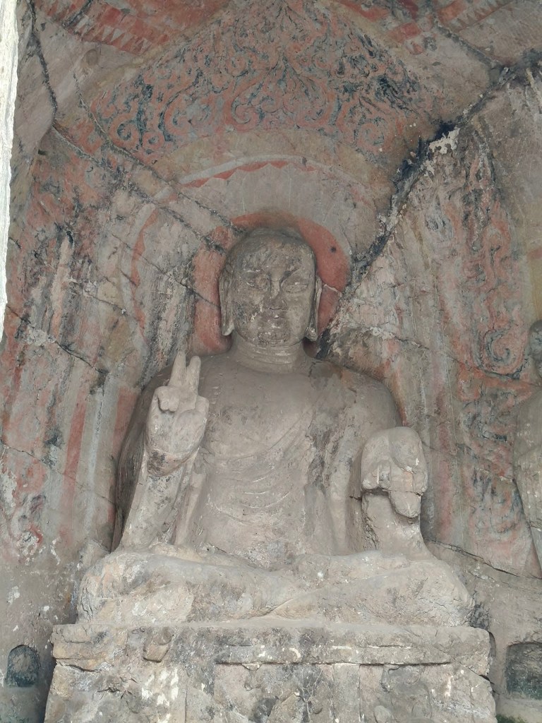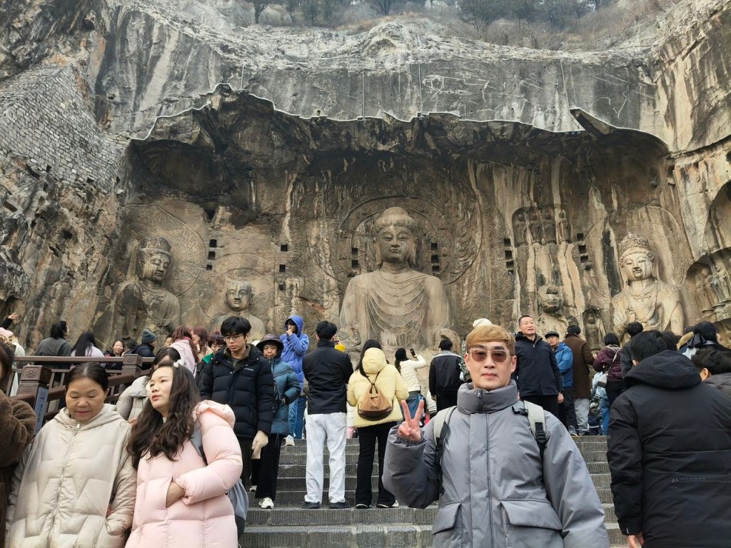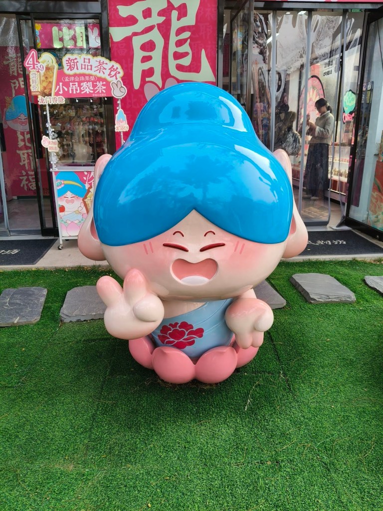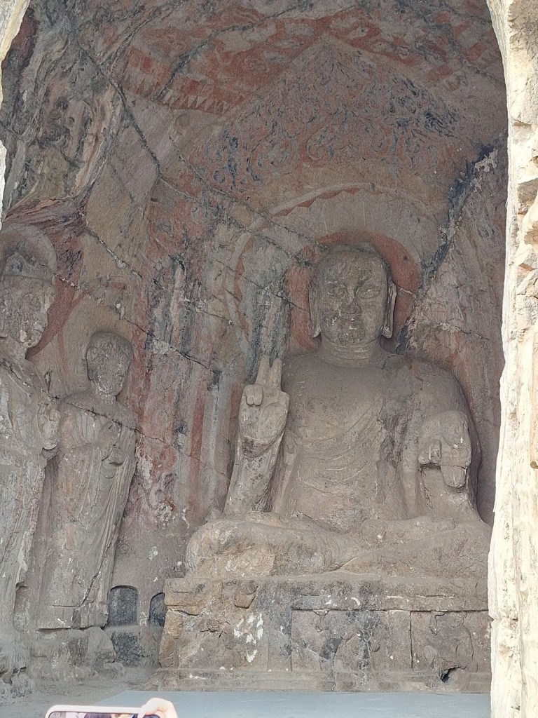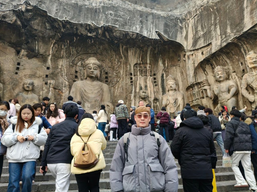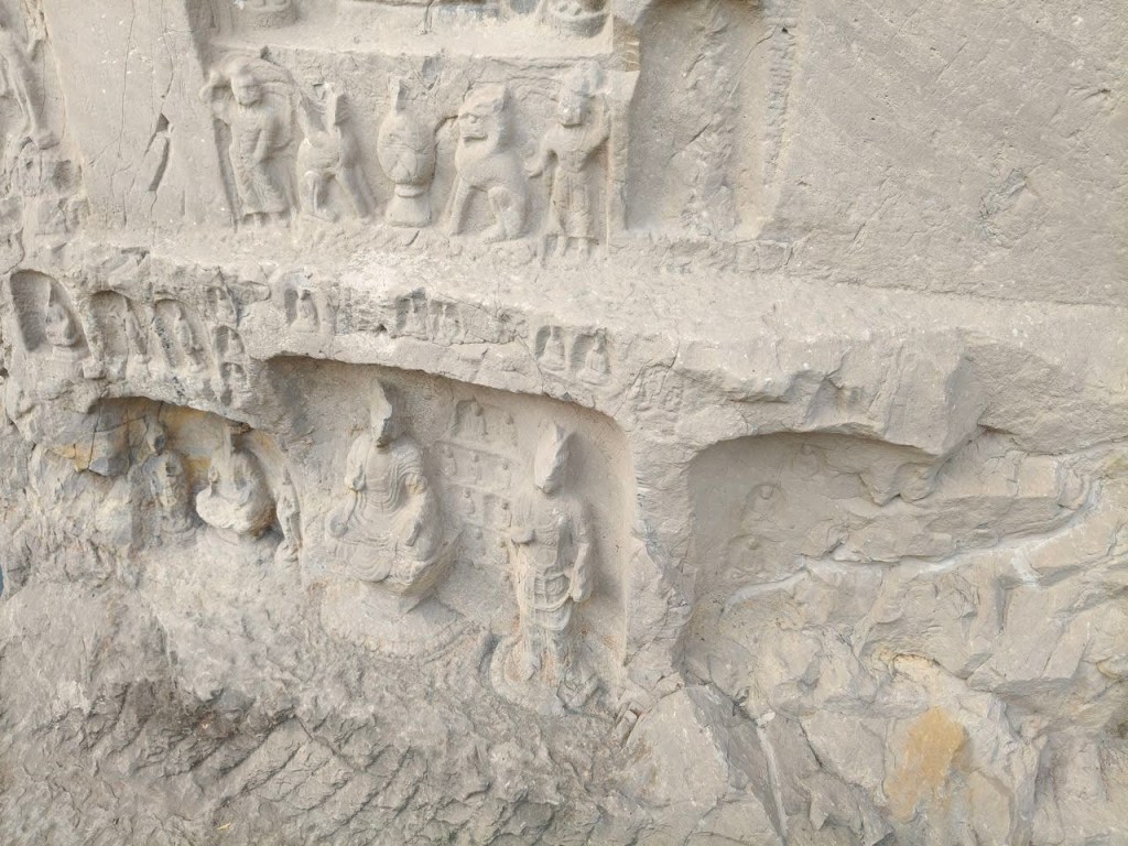 ที่นี่เราจะได้พบกับความยิ่งใหญ่อลังของงานแกะสลักหน้าผาขนาบแม่น้ำอี๋ (Yi River) อายุกว่า 1,500 ปี จนได้รับยกย่องจาก UNESCO ให้เป็นมรดกโลก เช่น พระโพธิสัตว์ไวโรจนะ (Vairocana Buddha) องค์ใหญ่ยักษ์สูงกว่า 17 เมตร ใบหน้าอิ่มเอิบ สง่างามมาก ขนาบข้างด้วยรูปปั้นพระสาวกและทวารบาลที่แกะสลักได้ดูมีกล้ามเนื้อและอารมณ์ที่สมจริงสุดๆ