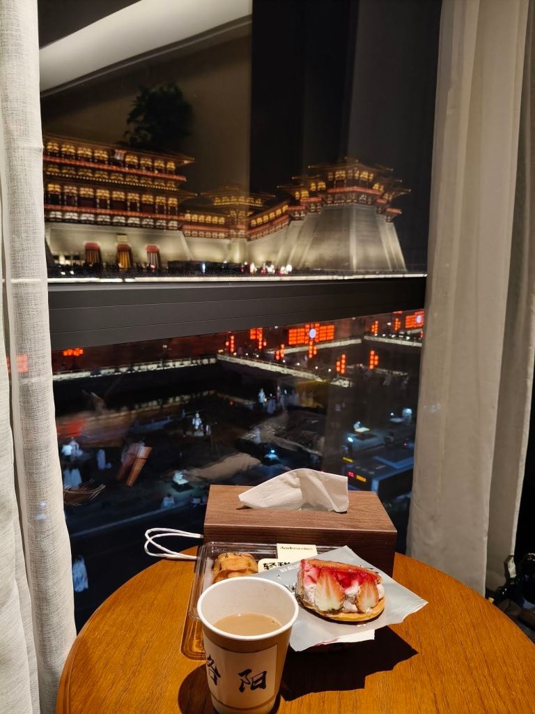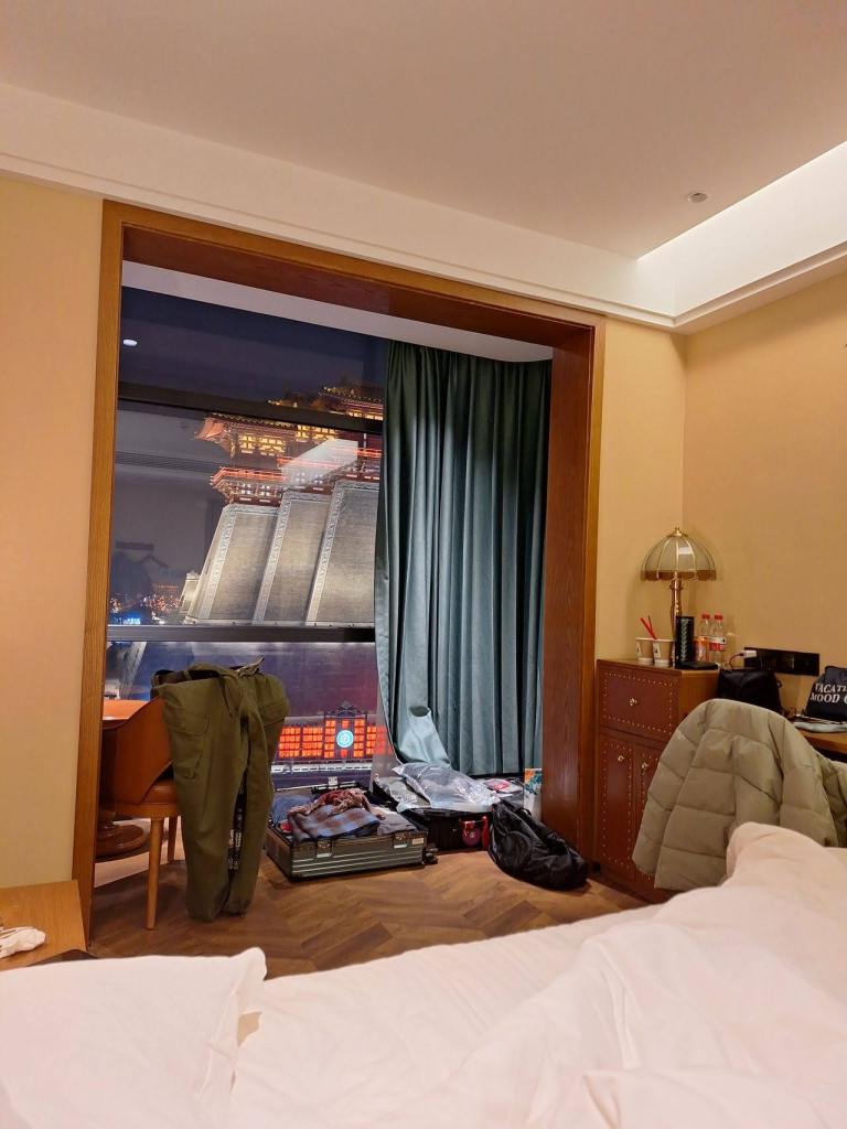 วันนี้เราย้ายโรงแรม เพราะไม่โอเคกับโรงแรมเดิมมากๆๆๆ … โรงแรมใหม่ Zhe·Fei Hotel (Tiantang Mingtang Yingtianmen) อยู่ติด Yingtiamen เปิดหน้าต่างก็เห็นเลย ว้าวๆๆ มาก โรงแรมนี้โดนใจสุด มีเครื่องชงกาแฟสด ชาร้อนบริการ พร้อมเครื่องซักอบผ้าให้ใช้ฟรี