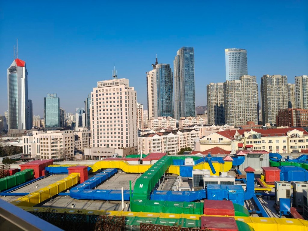 ได้เวลามื้อเที่ยง นั่งรถไฟใต้ดินไปห้าง Hisense ทานอาหารทะเลรสชาติอร่อยในห้าง และเก็บภาพบรรยากาศเมืองชิงเต่าจากชั้นดาดฟ้าของห้าง