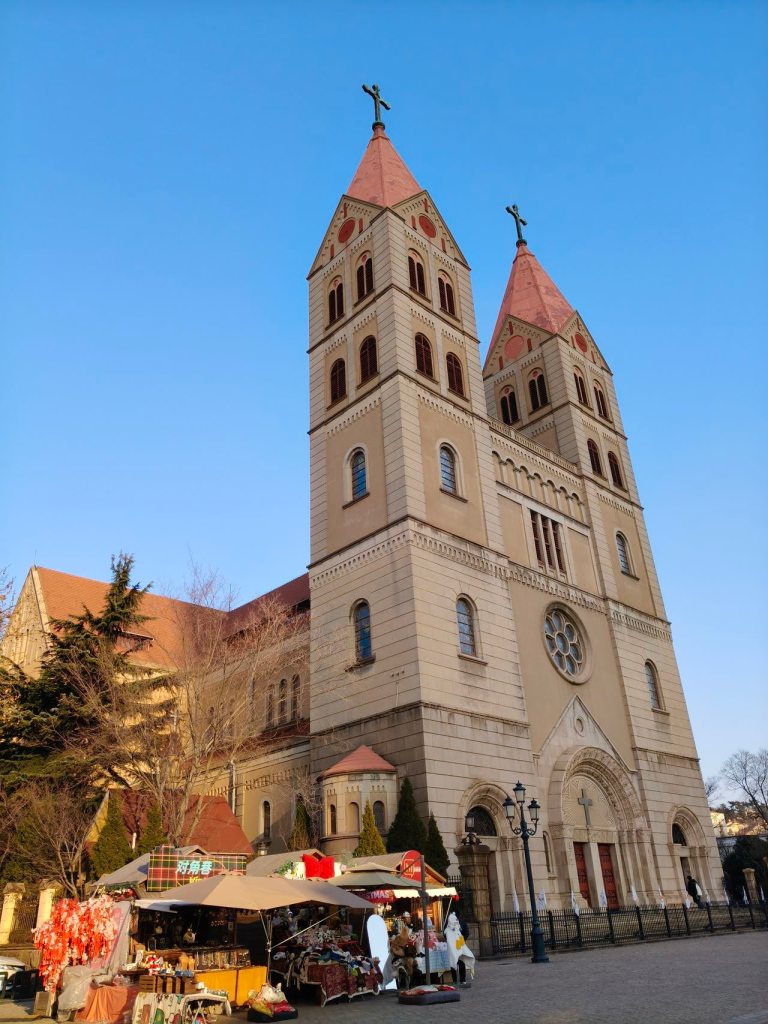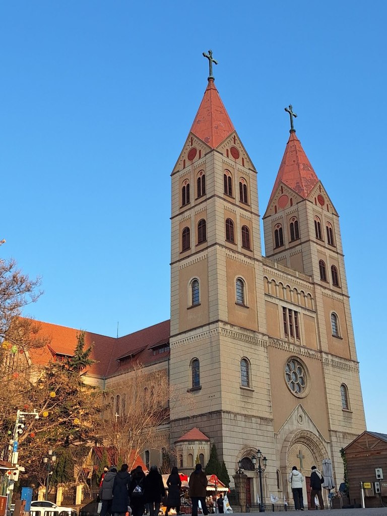 เดินชิวๆ ถึงโบสถ์ St. Michael’s Cathedral หรือโบสถ์คาทอลิกชิงเต่า เป็นอาสนวิหารสไตล์โกธิก-โรมาเนสก์ที่ใหญ่ที่สุดในชิงเต่า สร้างเสร็จในปี 1934 โดยสถาปนิกชาวเยอรมัน โดดเด่นด้วยหอระฆังคู่สูง 56 เมตรและหลังคากระเบื้องสีแดง เป็นแลนด์มาร์คสำคัญในย่านเมืองเก่า