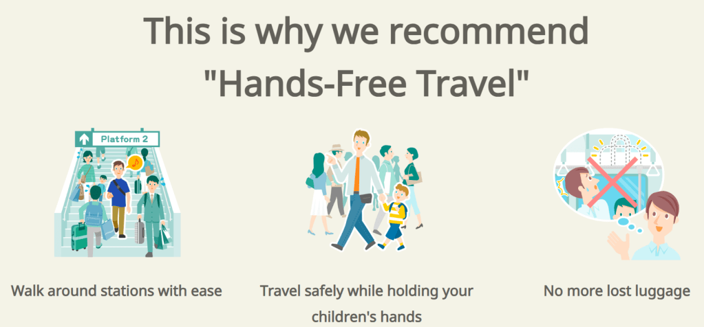 การเที่ยวรูปแบบหนึ่งที่เป็นที่นิยมสำหรับทริปญี่ปุ่น ก็คือ Hand-Free Travel เป็นการเที่ยวที่เราใช้บริการฝากส่งกระเป๋าจากที่หนึ่งไปที่หนึ่ง เช่น ส่งจากสนามบินไปโรงแรม, ระหว่างโรงแรม, หรือไปสถานีรถไฟ เพื่อให้ท่องเที่ยวได้อย่างอิสระโดยไม่ต้องลากกระเป๋าหนัก ช่วยลดความลำบากในการเดินทางและประหยัดเวลา